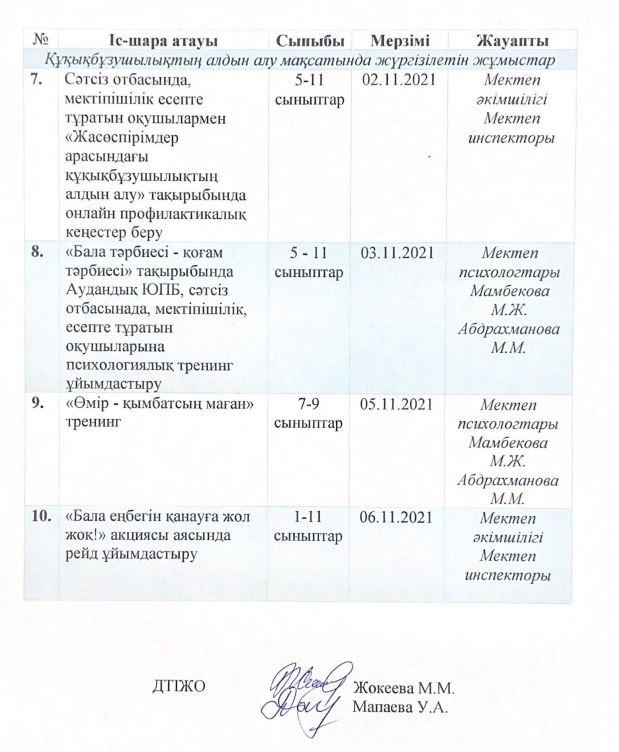 2020-2021 оқу жылының күзгі демалыс кезінде атқарылатын жұмыс жоспары.