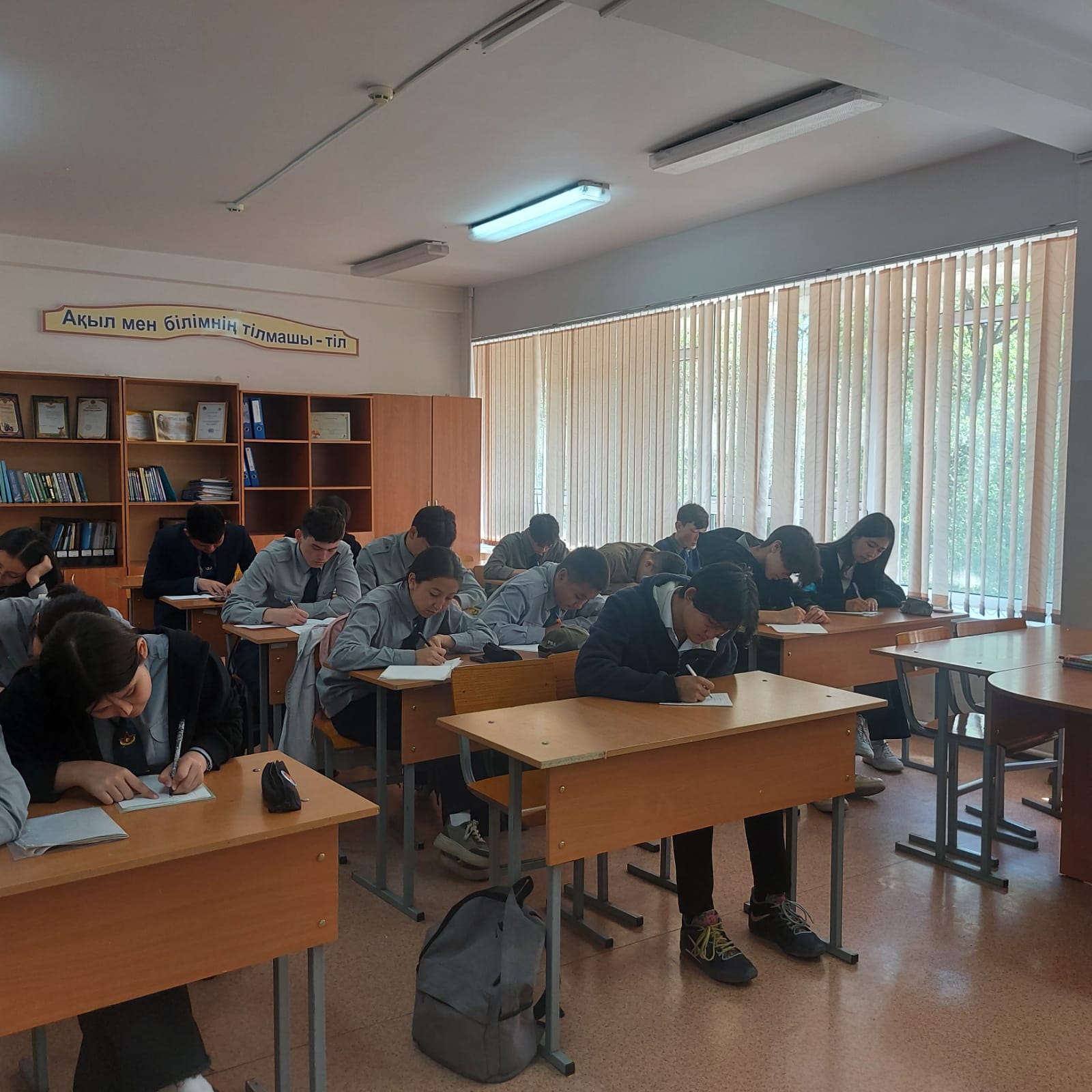 Мектебімізде бұл іс-шара ережеге сай 4 мамыр күні сағат 11.00- де өткізілді. Атаулы іс-шараның нәтижесінде 1228 оқушы мен 38 қызметкерлер диктант жазған.
