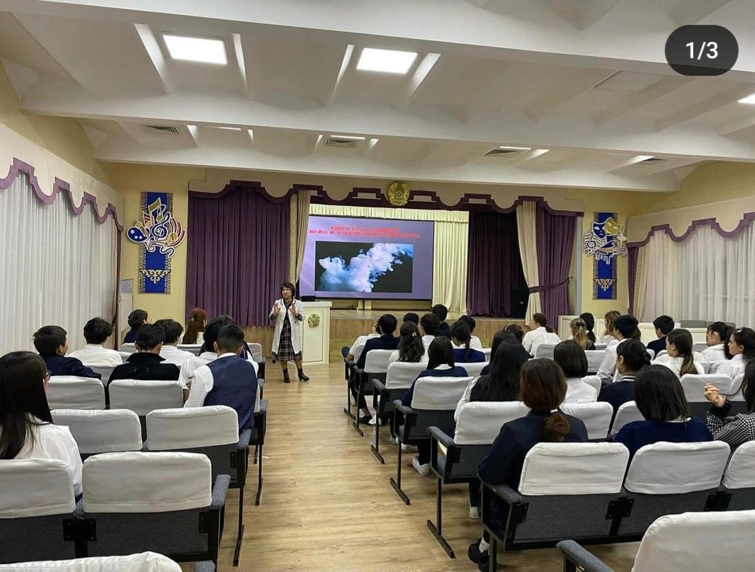 Алматы қаласы Білім басқармасына қарасты №19 жалпы білім беретін мектебінде №1 қалалық емхананың өкілі Сабирова А.К. оқушыларға “Темекінің адам денсаулығына әсері” тақырыбында оқушыларға түсіндірме жұмыстарын жүргізді.Қазіргі уақыттағы өзекті мәселелердің бірі жастар арасындағы темекіге,синтетикалық есірткіге тәуелділікті жою.Осы тақырыптағы ақпараттың аздығына байланысты бұл тәуелділік жастар арасында белең алып тұр.Осы мақсатта мақсатта оқушыларға кез келген тәуелділіктің алдын алу жөнінде тереңірек түсіндірілді.