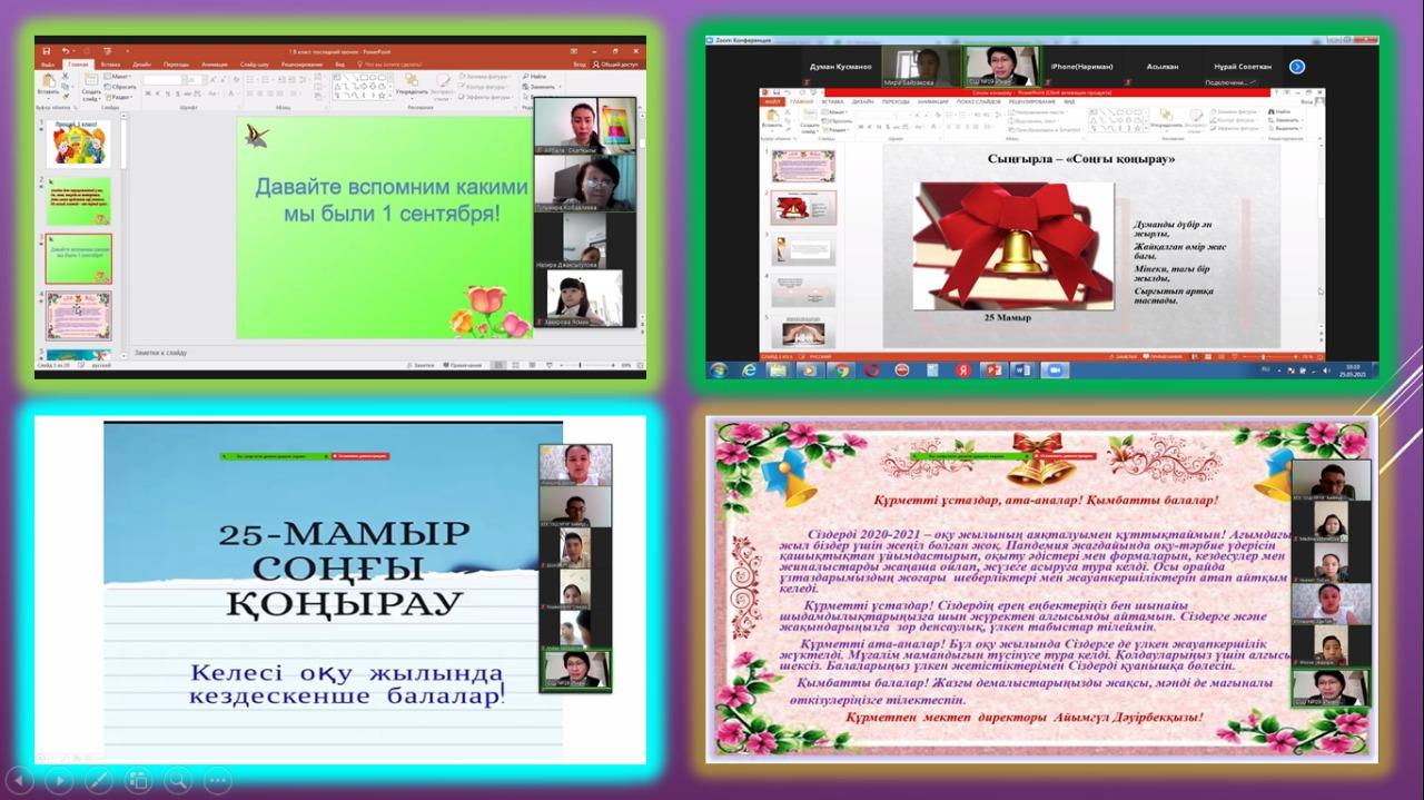 25 мамыр 2021 0 1 2 3 4 5 Соңғы қоңырау - 2021 Бүгін мектебімізде “Соңғы қоңырау" салтанатты жиыны онлайн форматында өткізілді.Құрметті ата-аналар, оқушылар және ұстаздар 2020-2021 оқу жылының аяқталуымен баршаңызды шын жүректен құттықтаймыз!