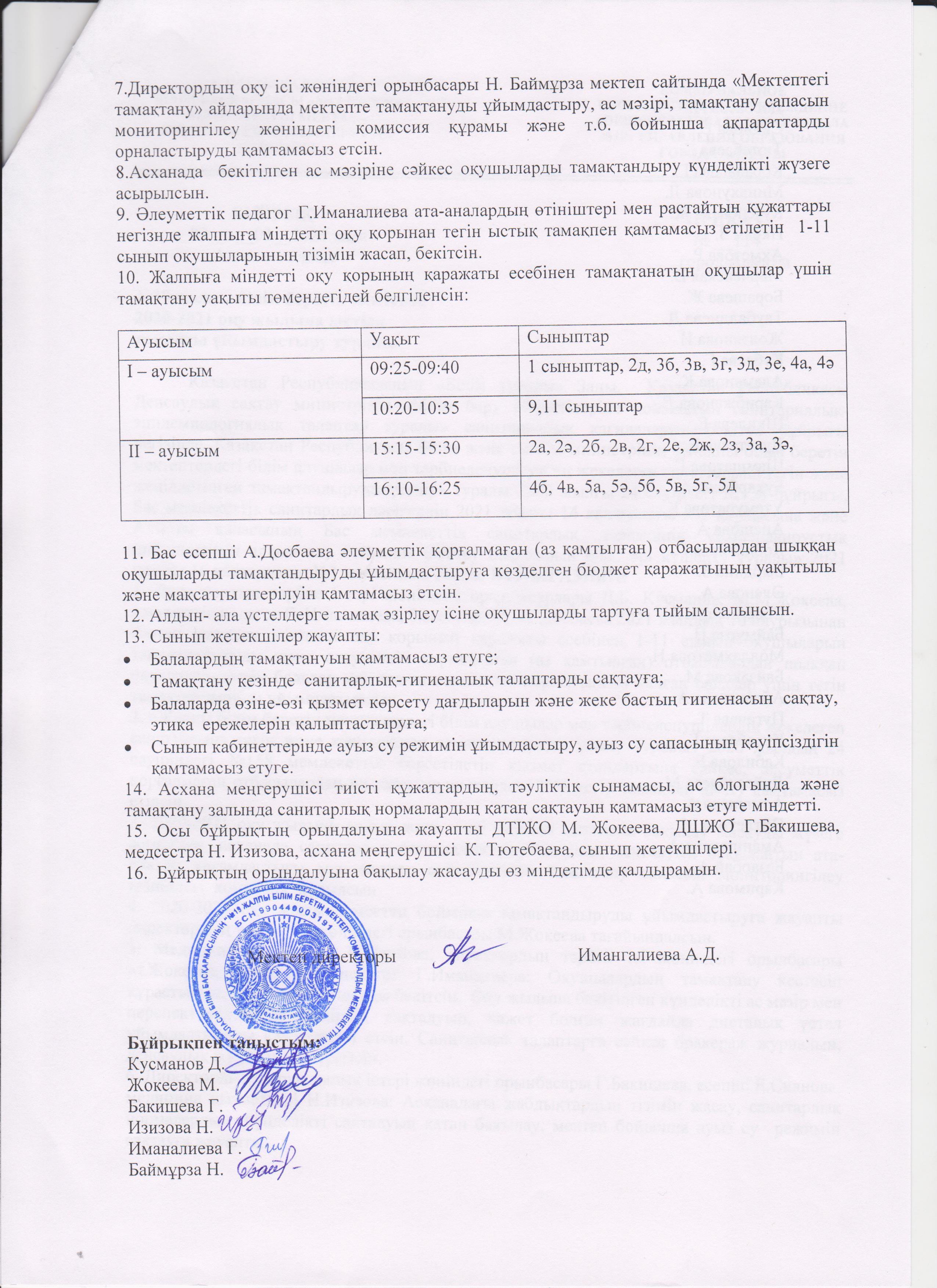 10 наурыз 2021 0 1 2 3 4 5 №19 жалпы білім беретін мектепте 2020-2021 оқу жылына ыстық тамақты ұйымдастыру туралы