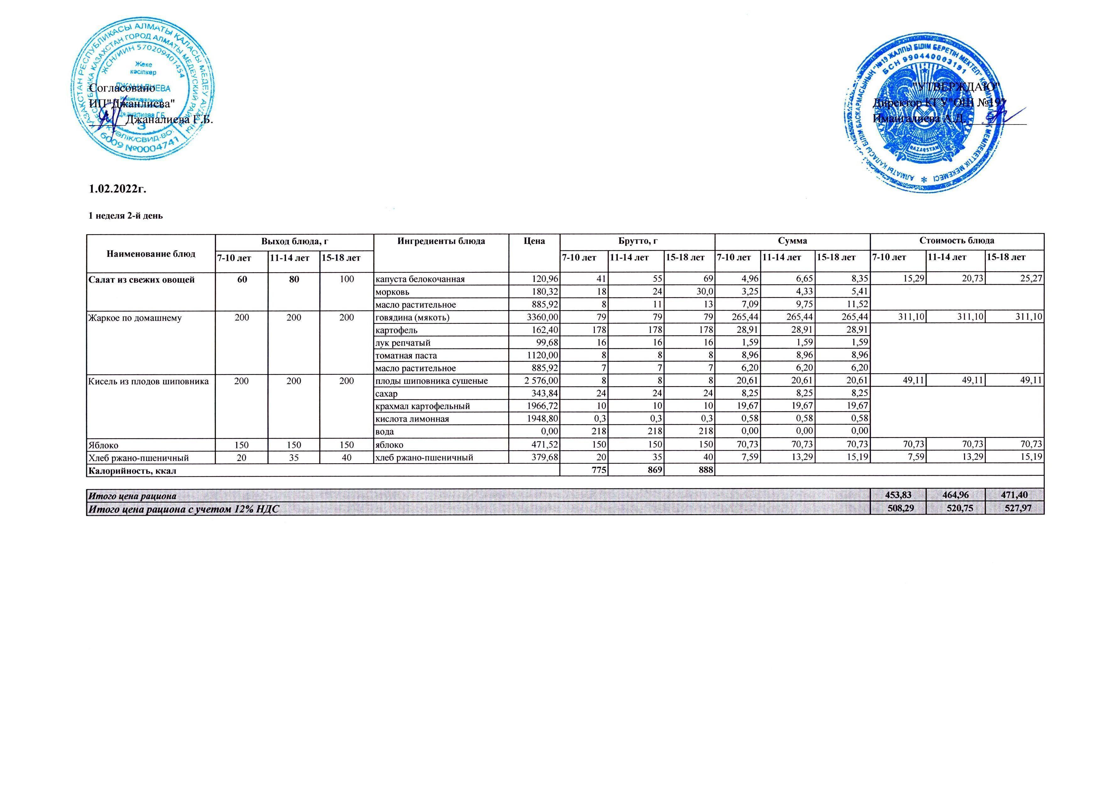 Ежедневное меню бесплатного питания (09.02.2022)