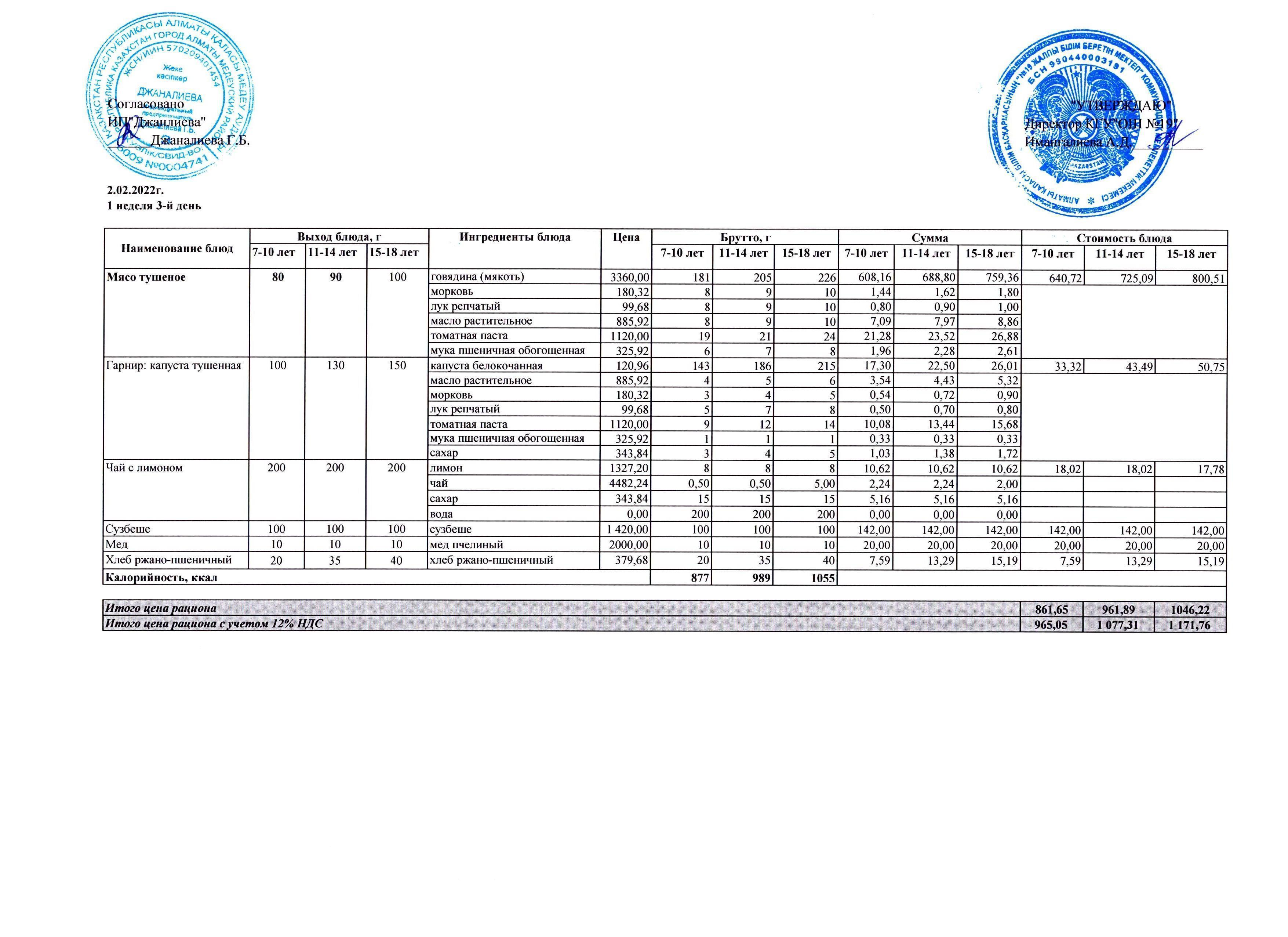 Ежедневное меню бесплатного питания (11.02.2022)