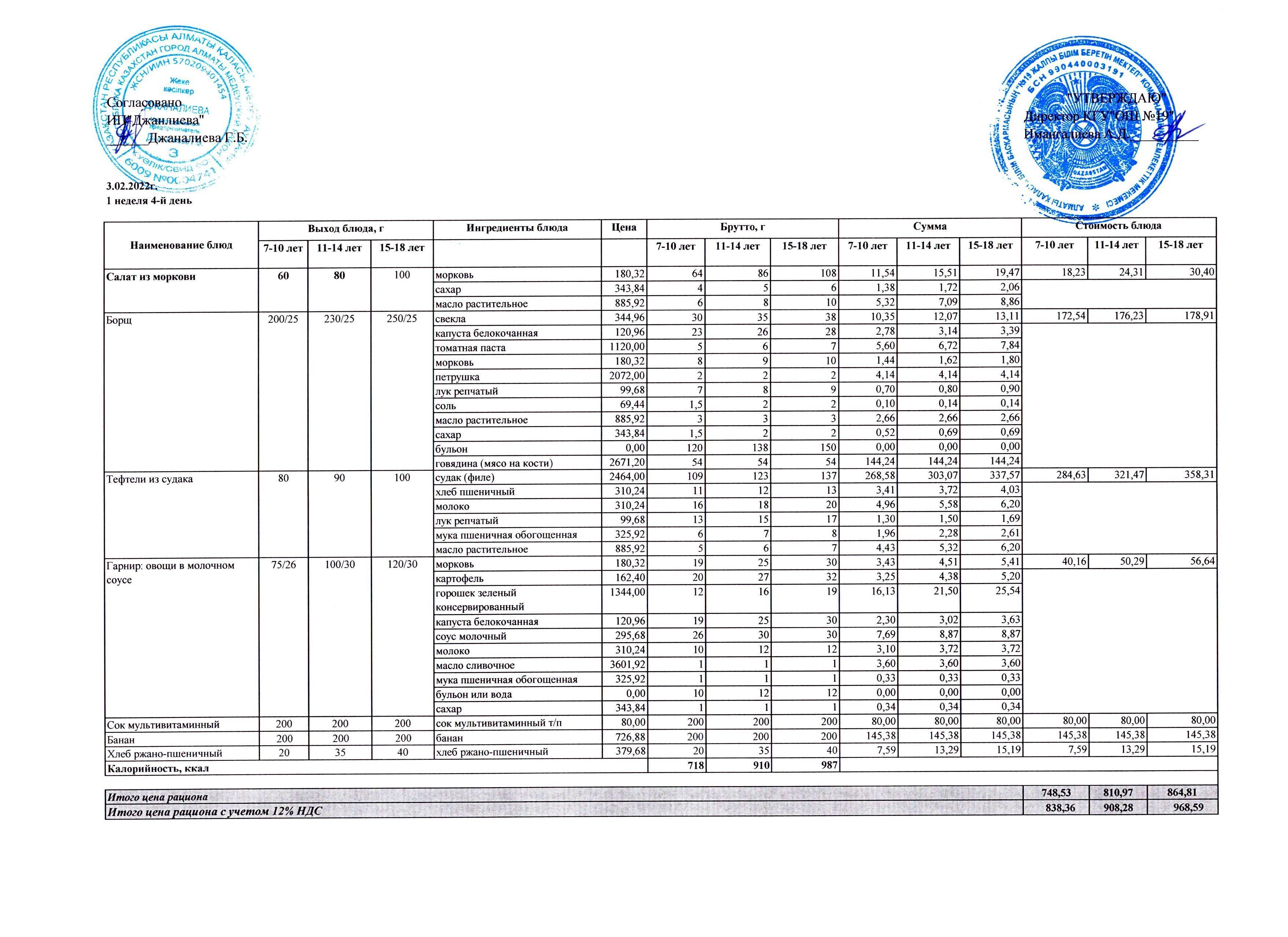 Ежедневное меню бесплатного питания (18.02.2022)
