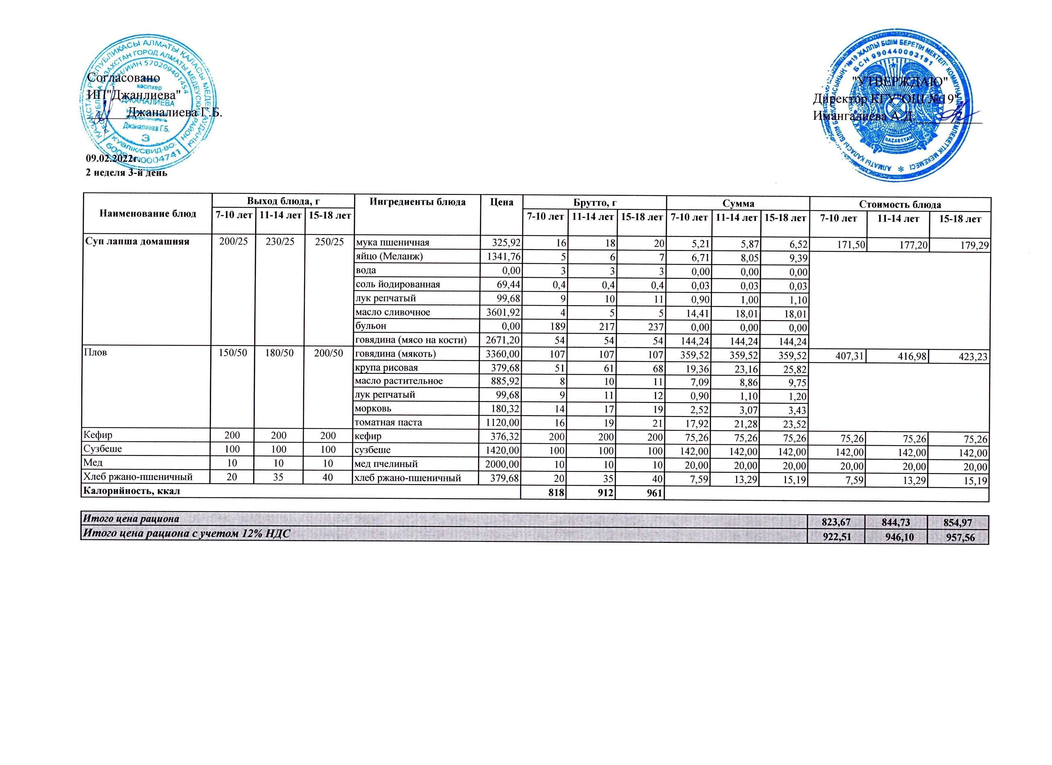 Ежедневное меню бесплатного питания (18.02.2022)