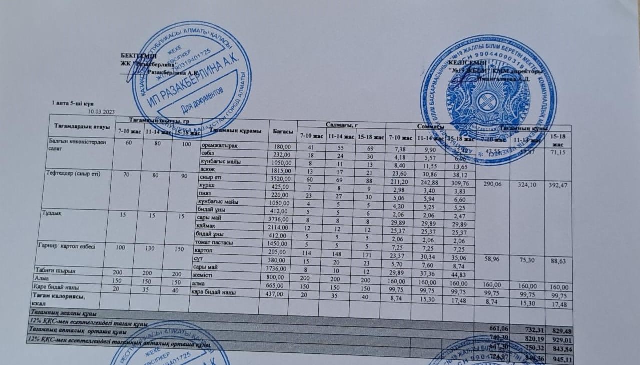Күнделікті тегін тамақтану мәзірі (10.03.2023)