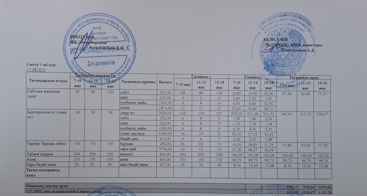 Күнделікті тегін тамақтану мәзірі (17.04.2023)
