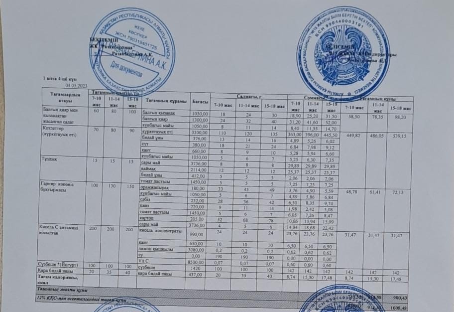 Күнделікті тегін тамақтану мәзірі (04.05.2023)