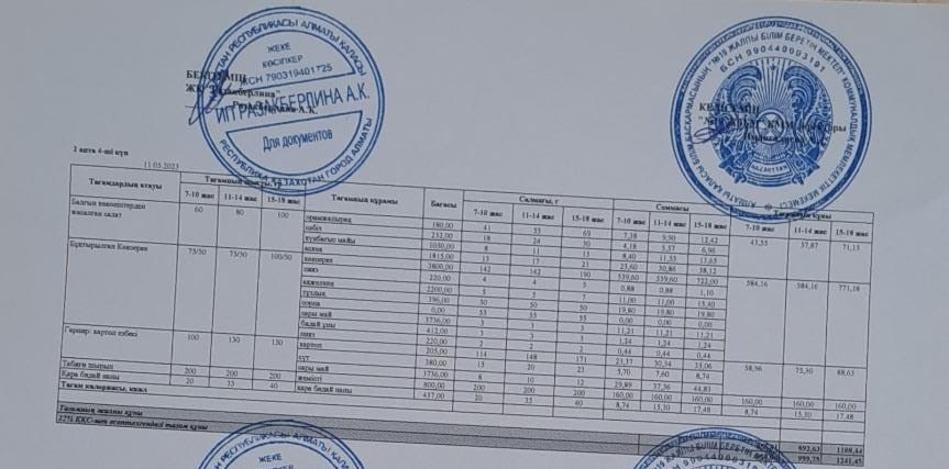 Күнделікті тегін тамақтану мәзірі (11.05.2023)