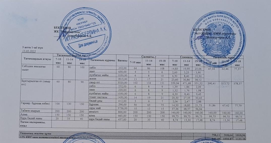 Күнделікті тегін тамақтану мәзірі (15.05.2023)