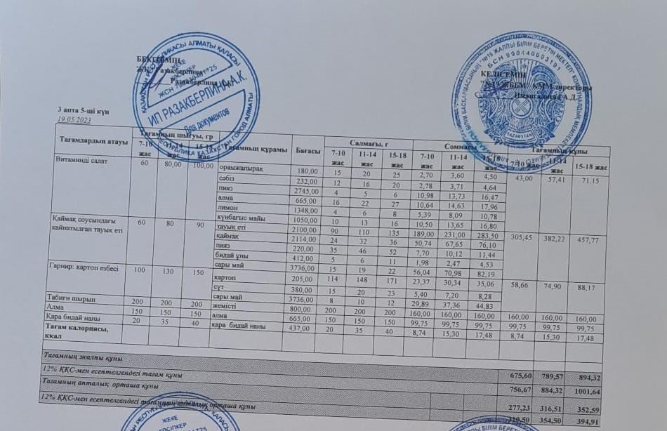 Күнделікті тегін тамақтану мәзірі (17.05.2023)