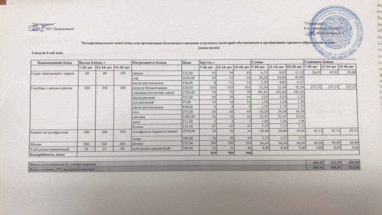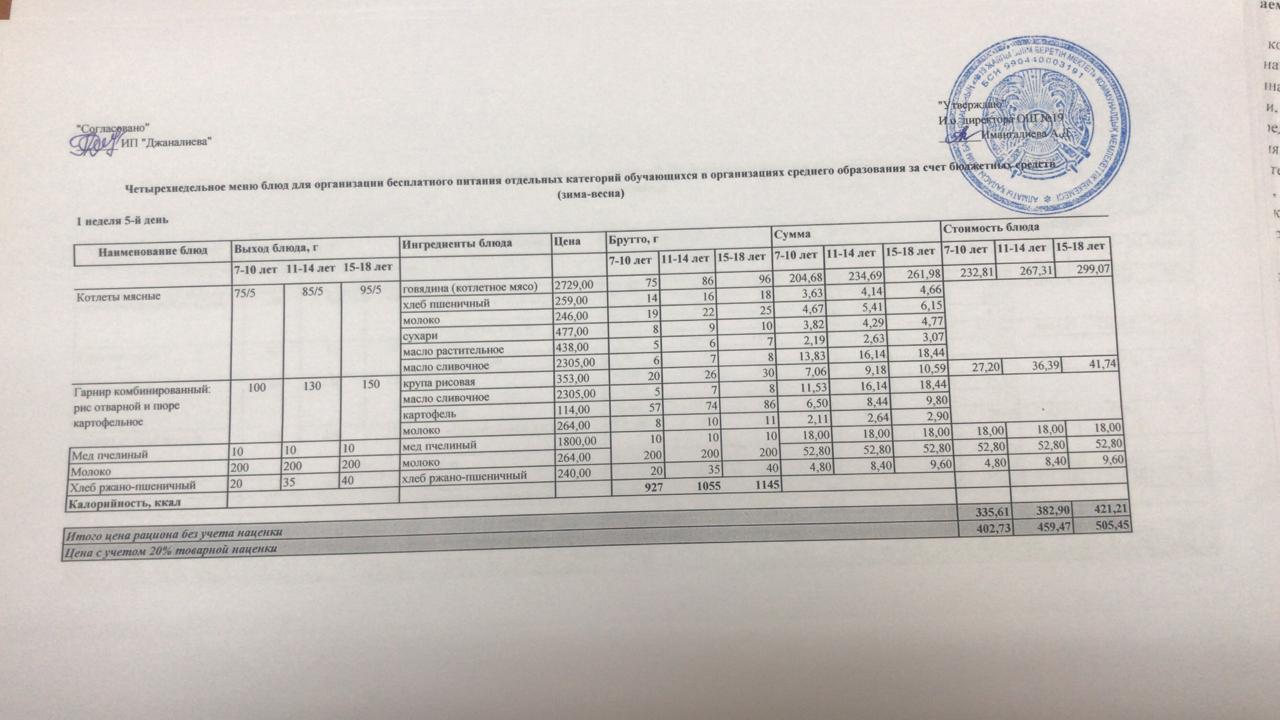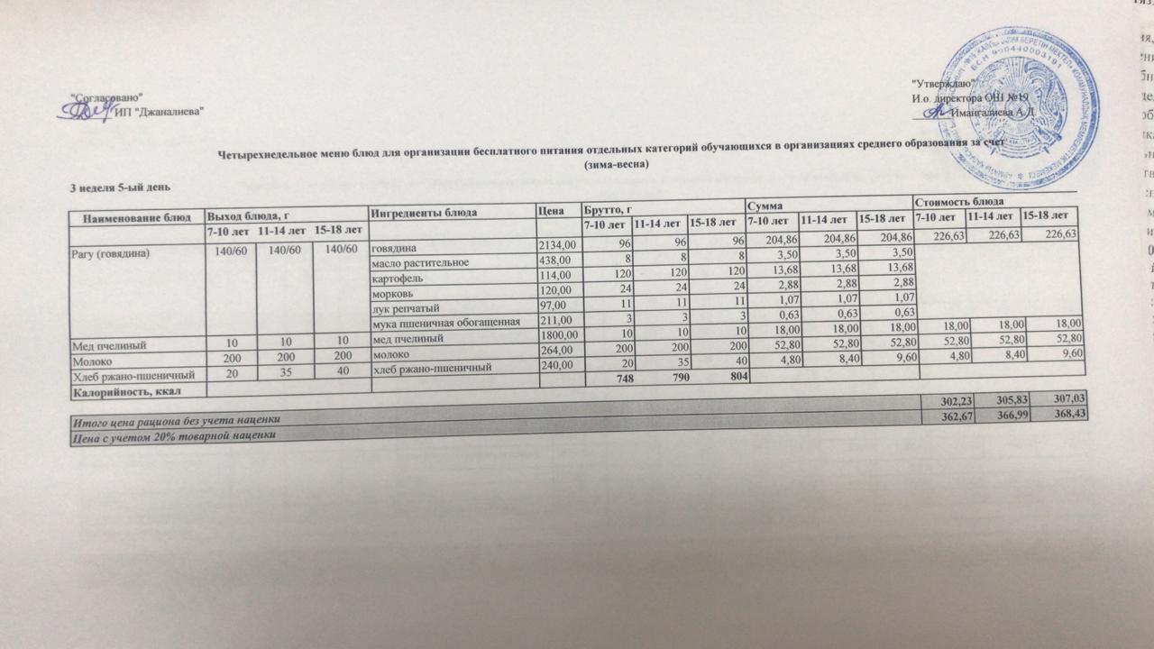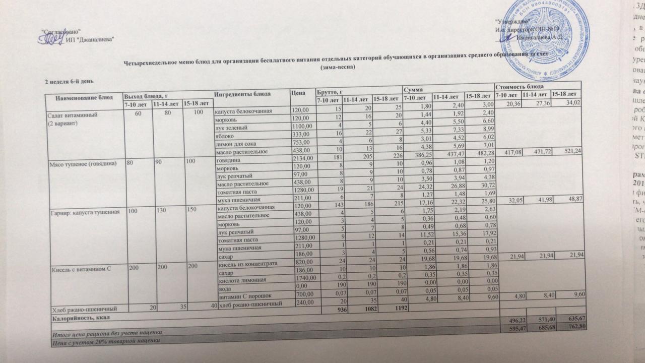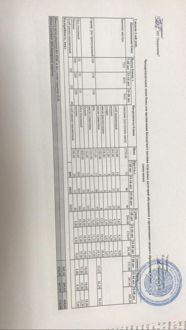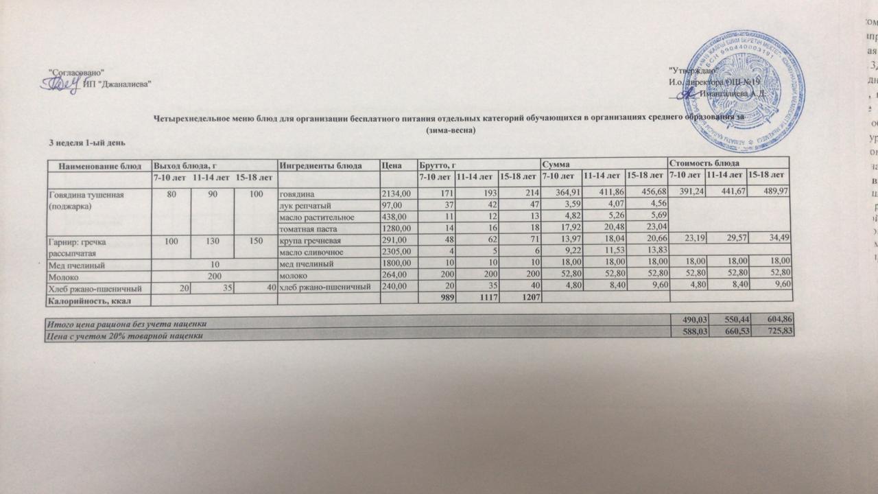 Четырехнедельное меню блюд для организации бесплатного питания отдельных категорий обучающихся в организациях среднего образования за счет бюджетных средств (зима - весна)