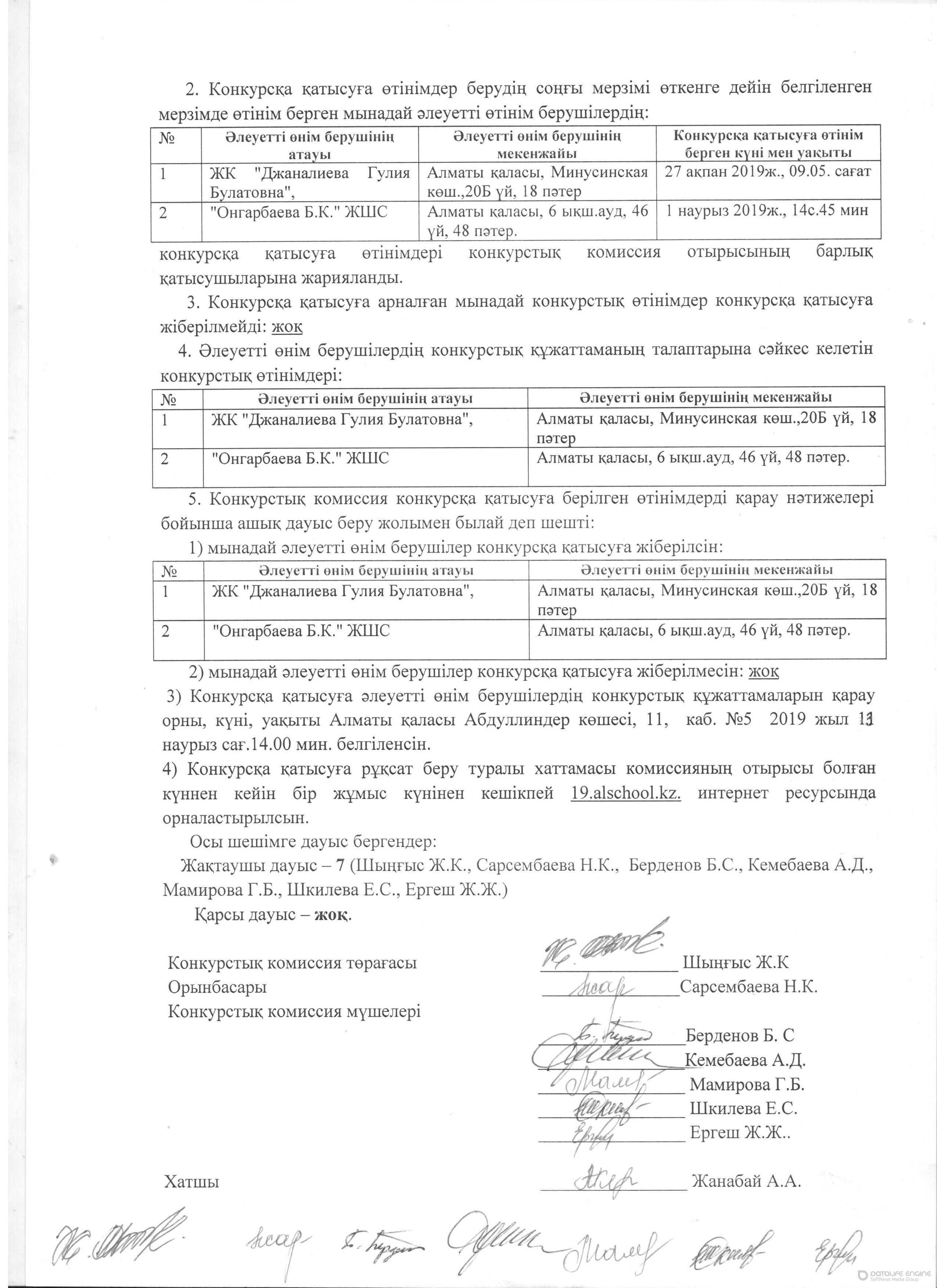 11 наурыз 2019 0 1 2 3 4 5 Конкурсқа қатысуға рұқсат беру туралы хаттама/Протокол о допуске к участию в конкурсе