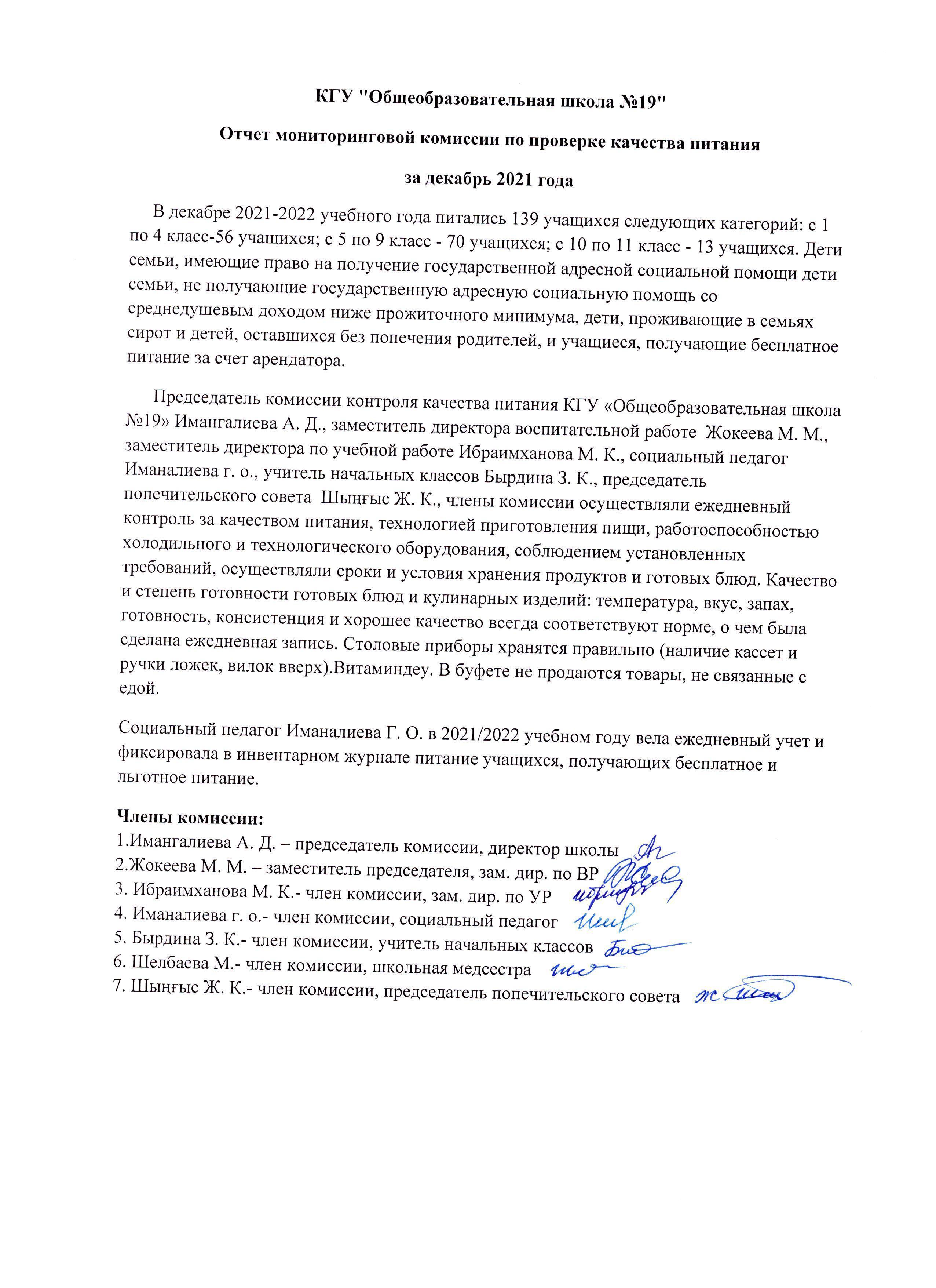 30 желтоқсан 2021 0 1 2 3 4 5 Желтоқсан айындағы мониторинг комиссиясының есебі/ Отчет мониторинговой комиссии за декабрь