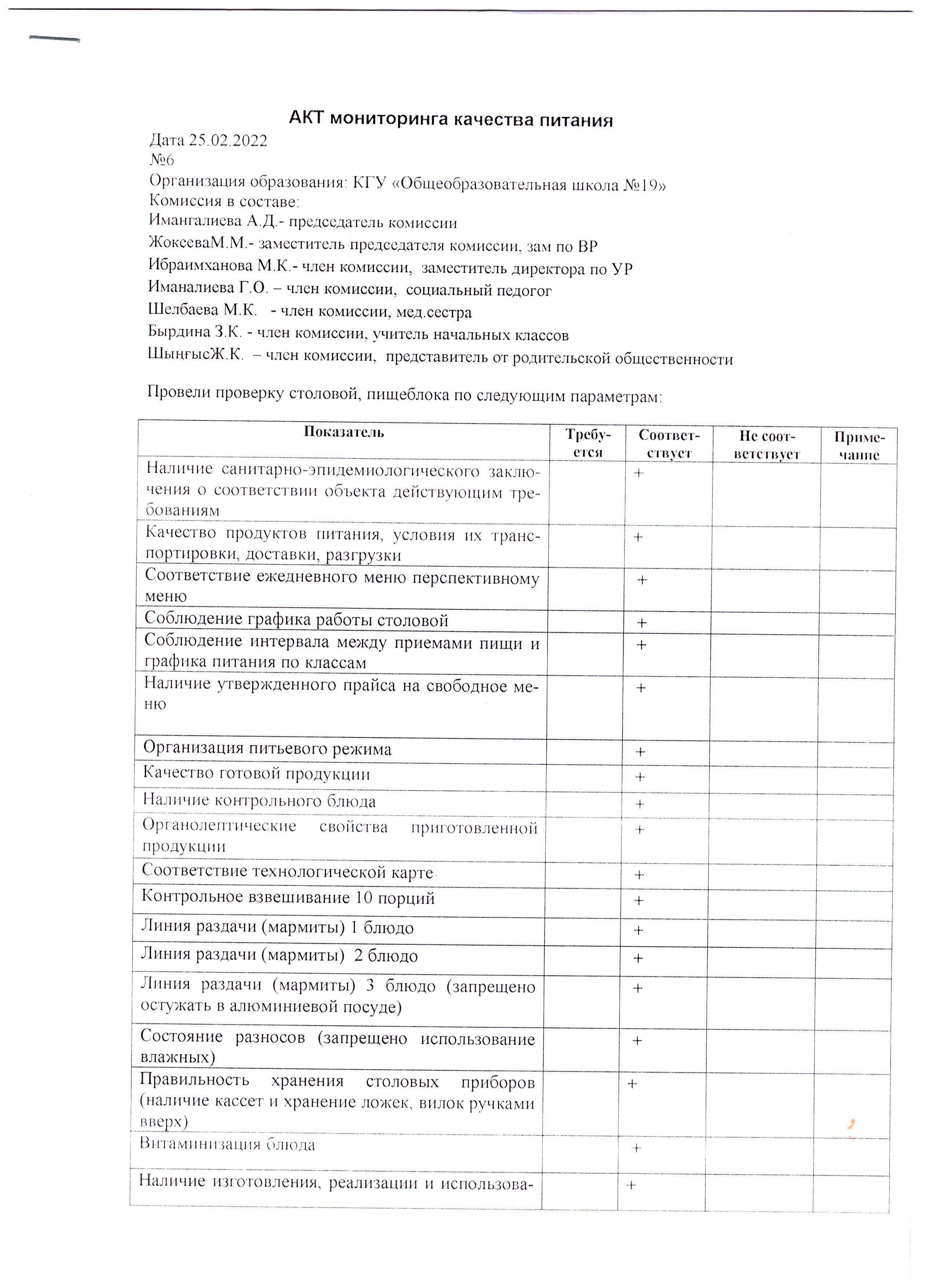 25 ақпан 2022 0 1 2 3 4 5 Ақпан айында тамақтану сапасына мониторинг жүргізу актісі/ АКТ мониторинга качества питаниея за февраль