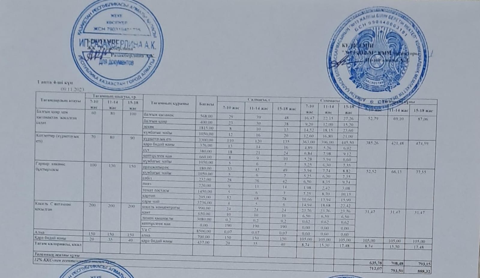 Күнделікті тегін тамақтану мәзірі (09.11.2023)
