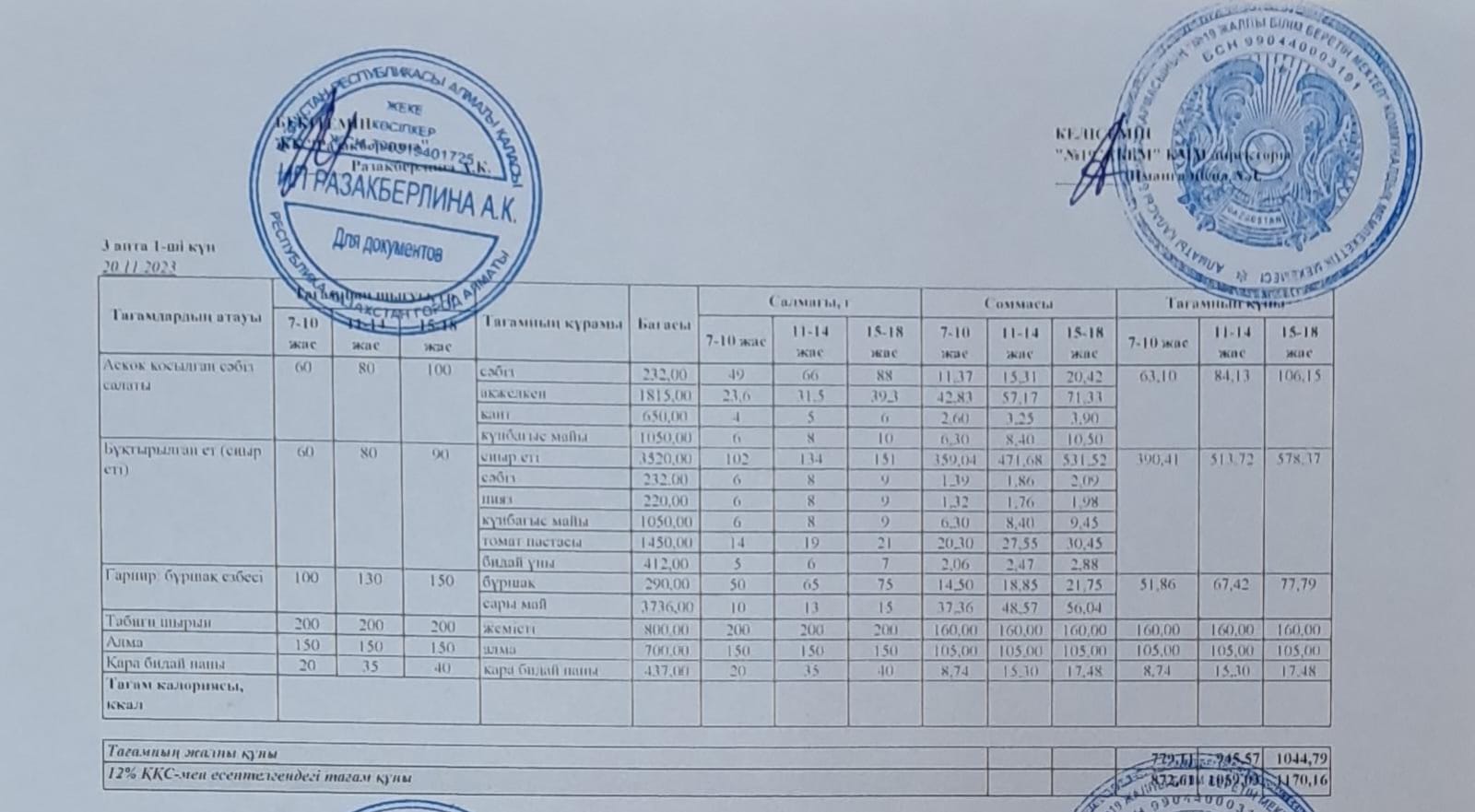 Күнделікті тегін тамақтану мәзірі (21.11.2023)