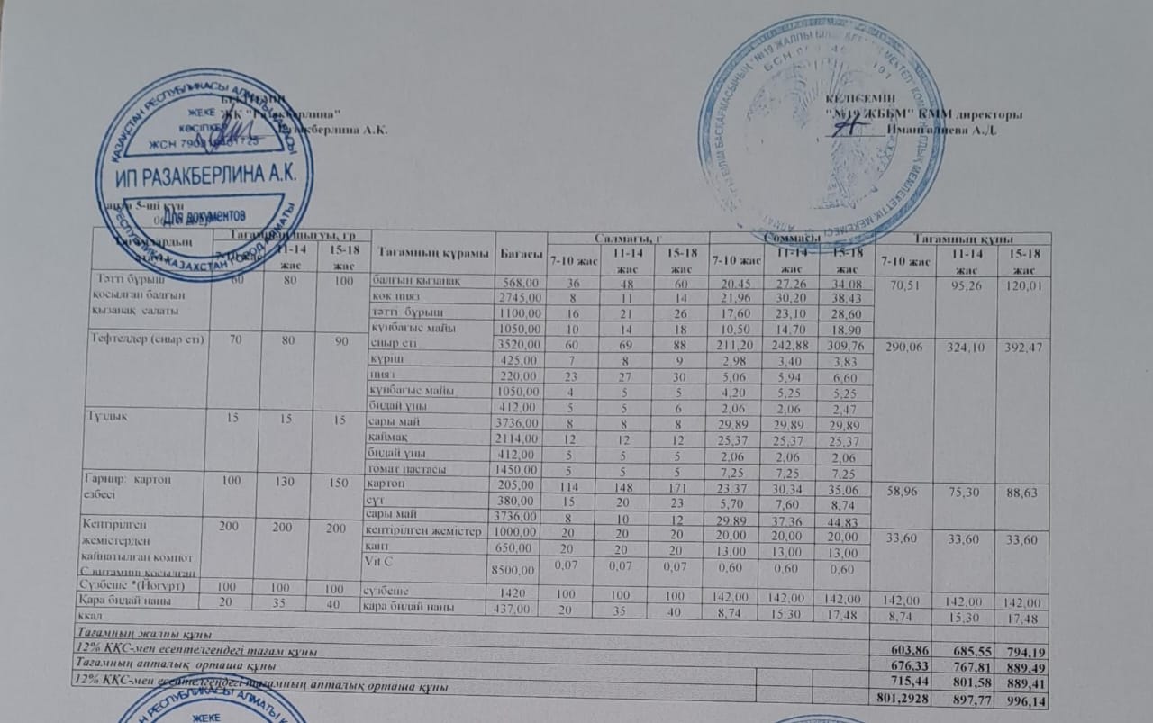 » Күнделікті тегін тамақтану мәзірі (06.10.2023)