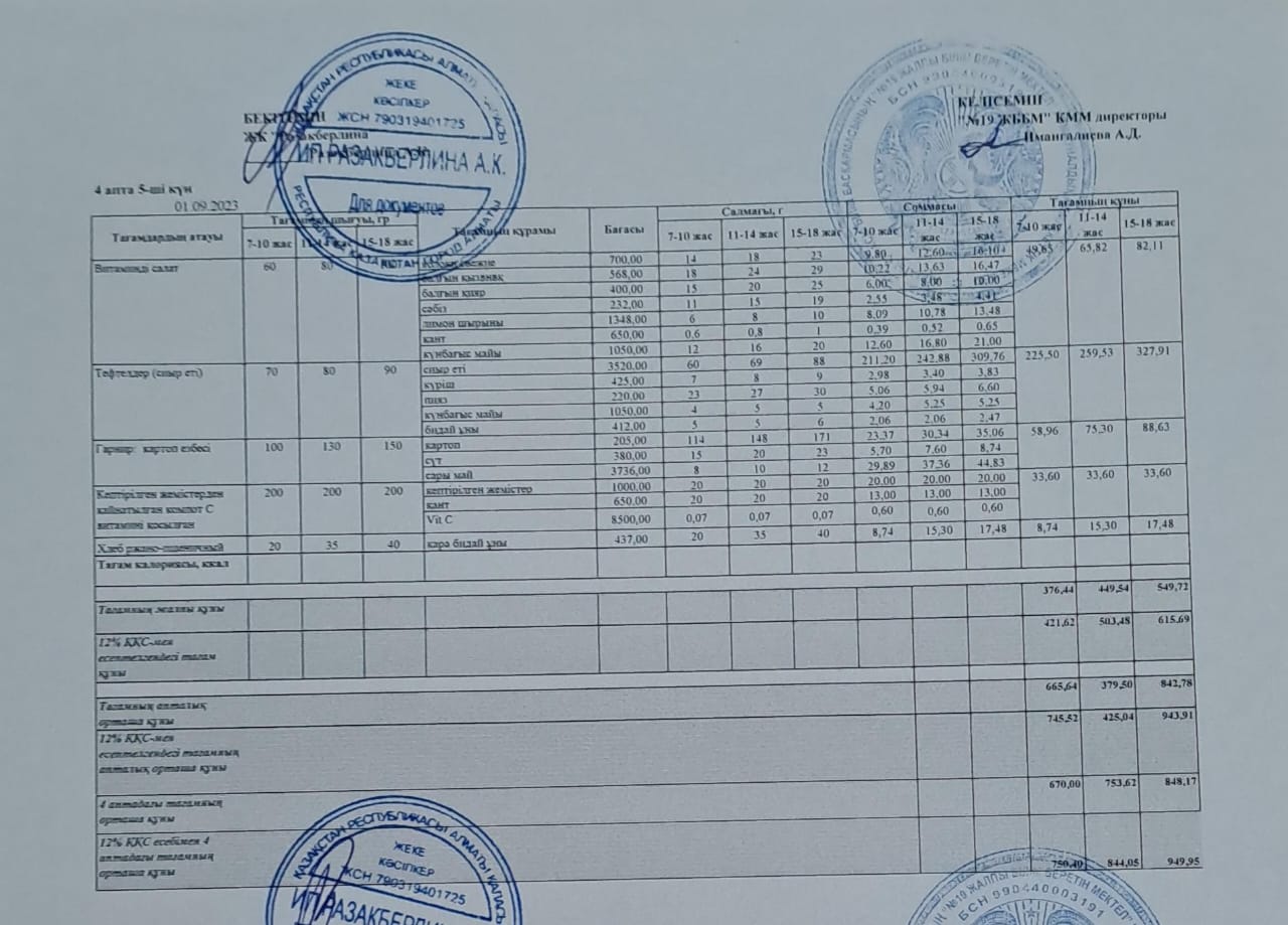 Күнделікті тегін тамақтану мәзірі (01.09.2023)