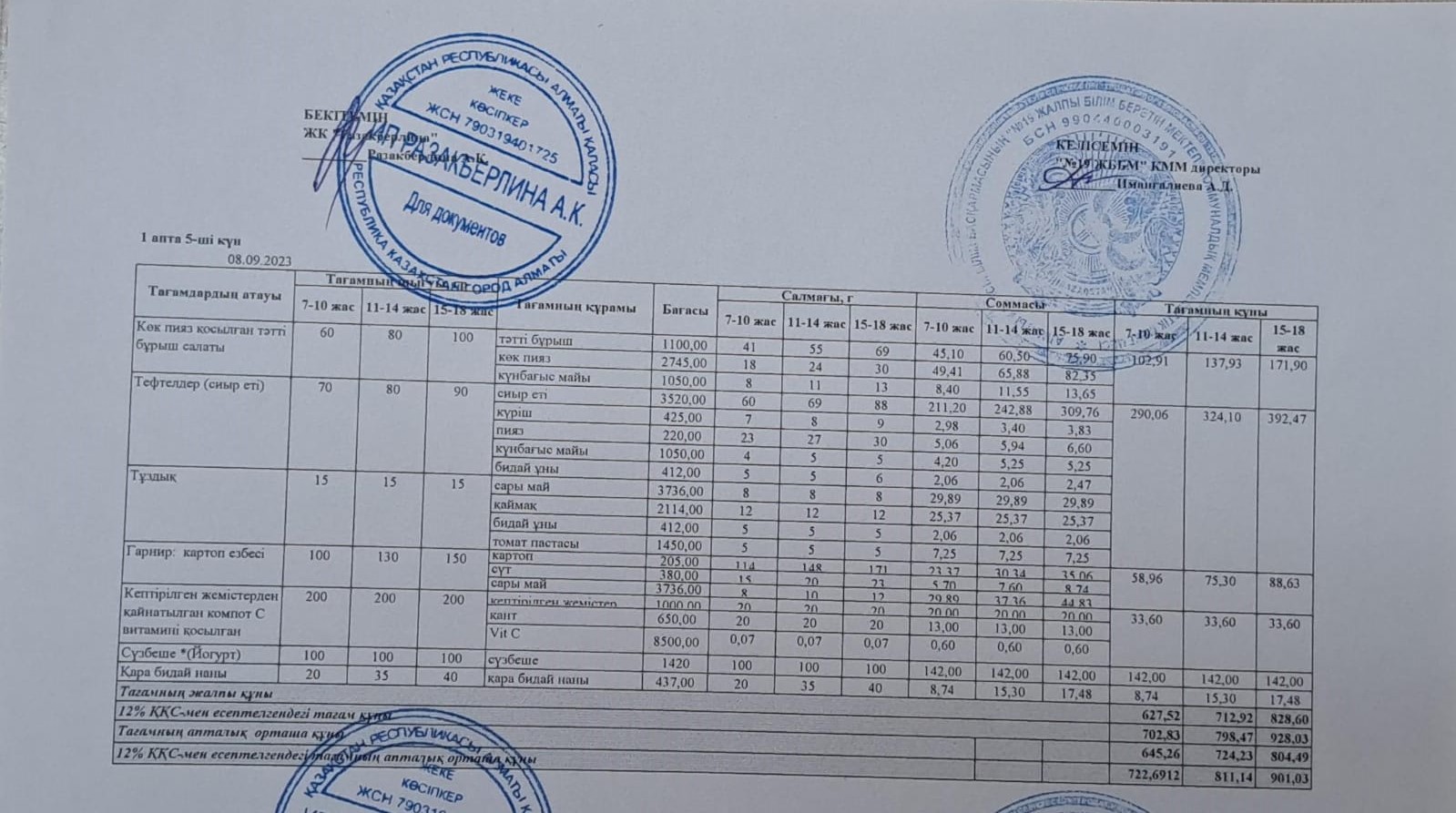 Күнделікті тегін тамақтану мәзірі (08.09.2023)