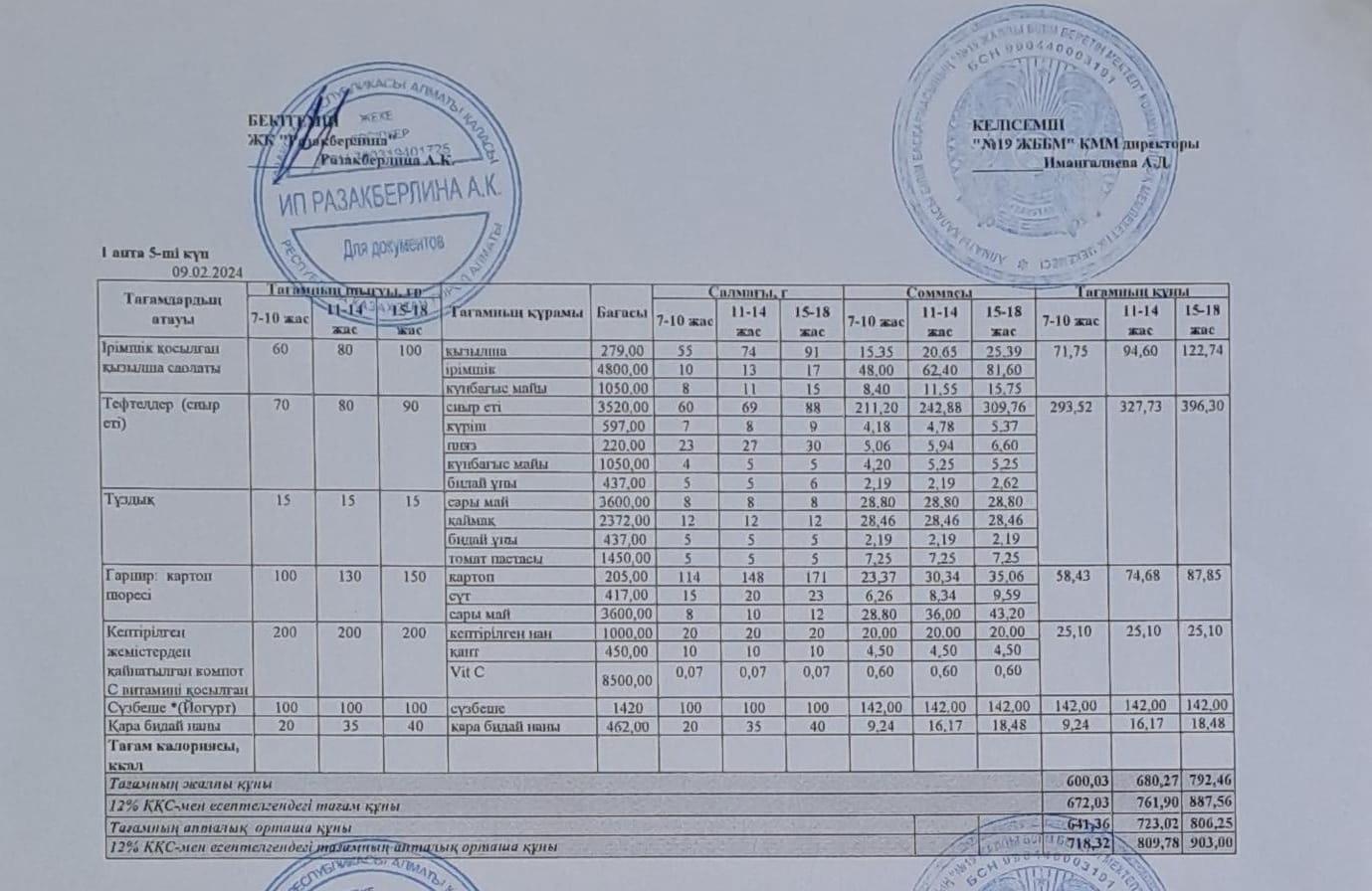 Күнделікті тегін тамақтану мәзірі (09.02.2024)