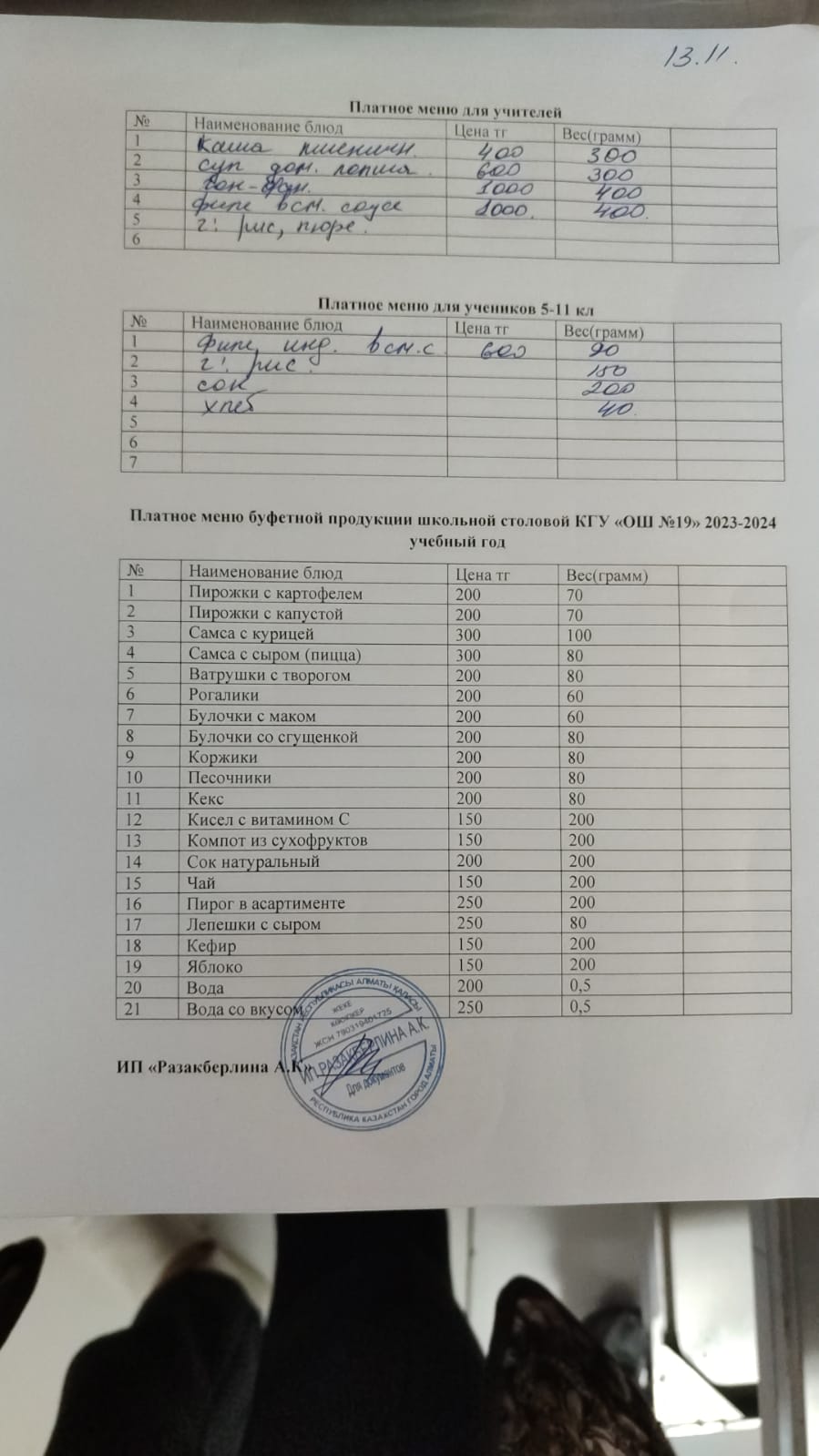 » Күнделікті ақылы тамақтану мәзірі (13.11.2024)