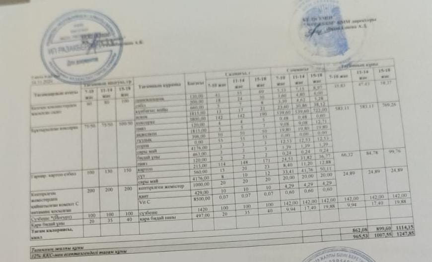 Күнделікті тегін тамақтану мәзірі (22.10.2024)