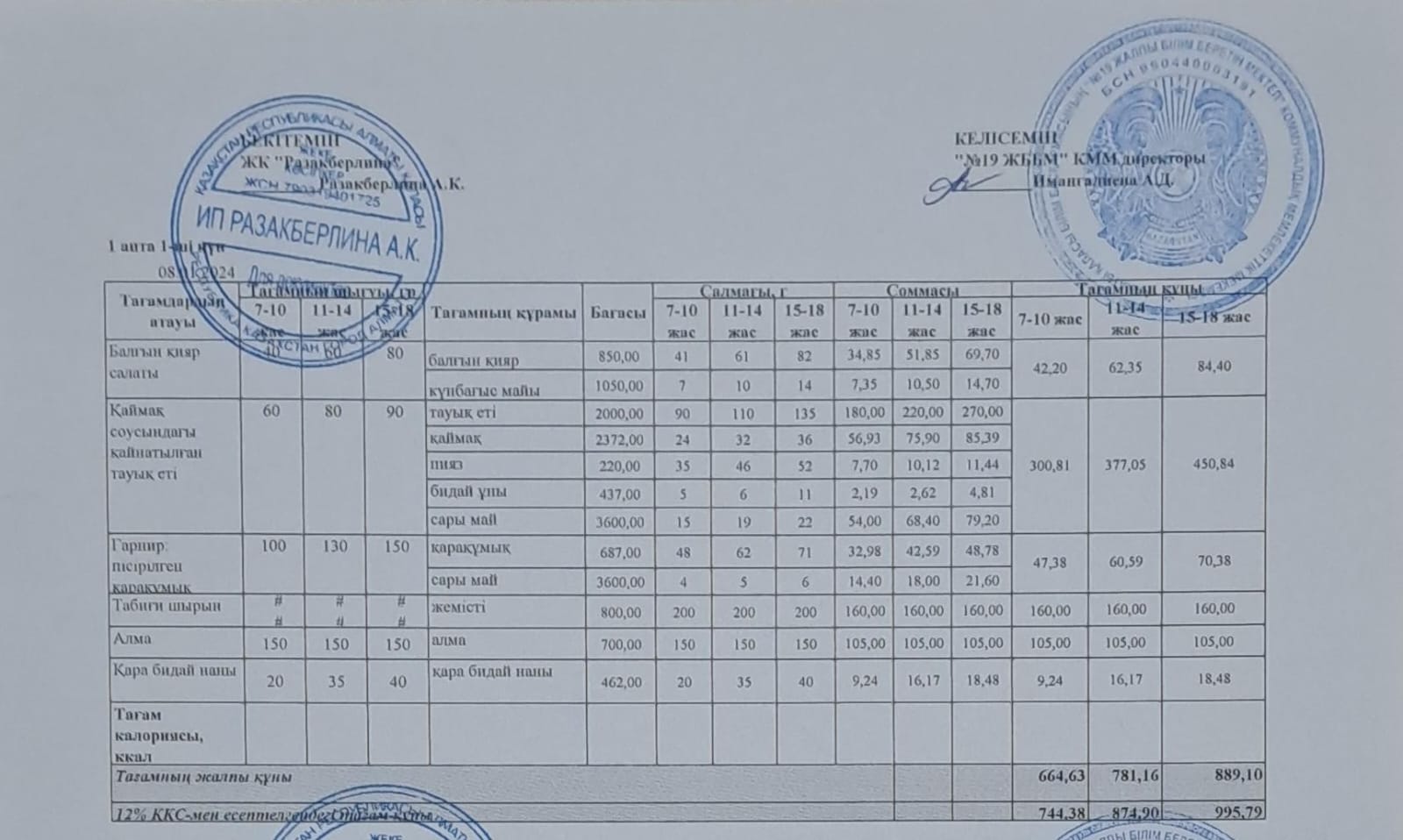Күнделікті тегін тамақтану мәзірі (08.01.2024)