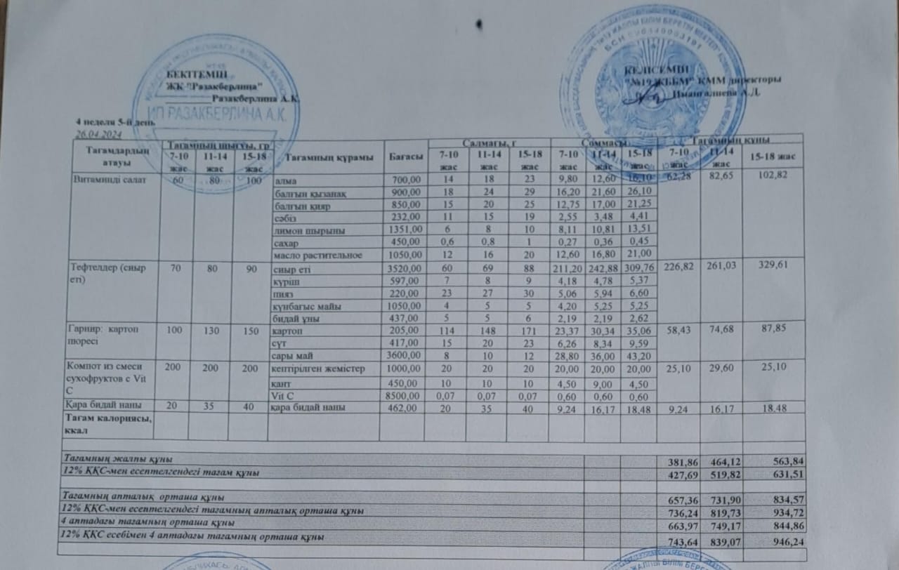 Күнделікті тегін тамақтану мәзірі (26.04.2024)