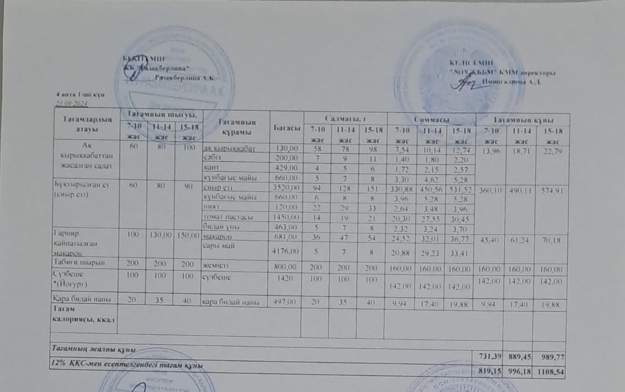 Күнделікті тегін тамақтану мәзірі (23.09.2024)