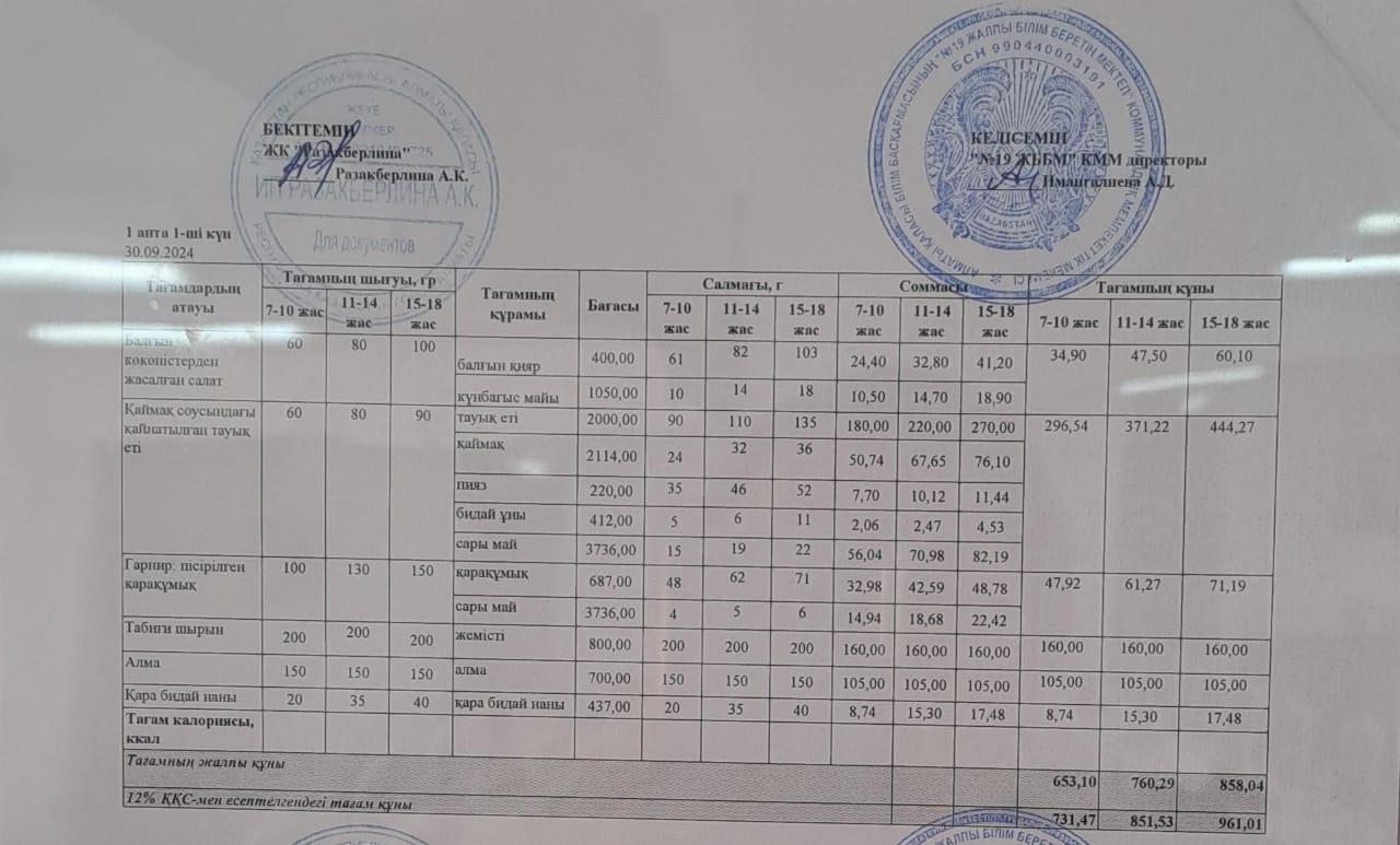 Күнделікті тегін тамақтану мәзірі (19.03.2024)