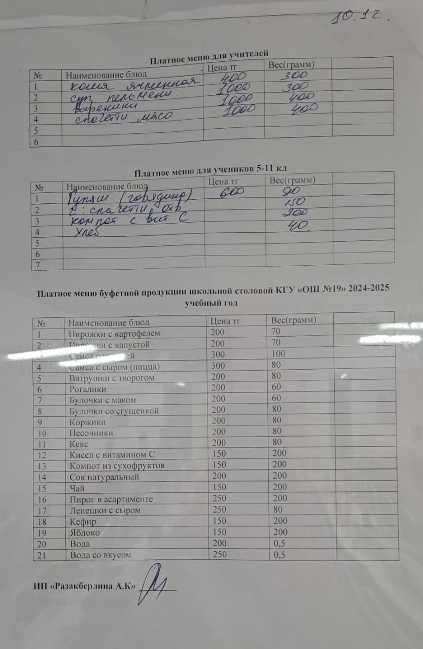 » Күнделікті ақылы тамақтану мәзірі (11.12.2024)
