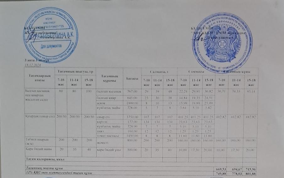 Күнделікті тегін тамақтану мәзірі (18.12.2024)