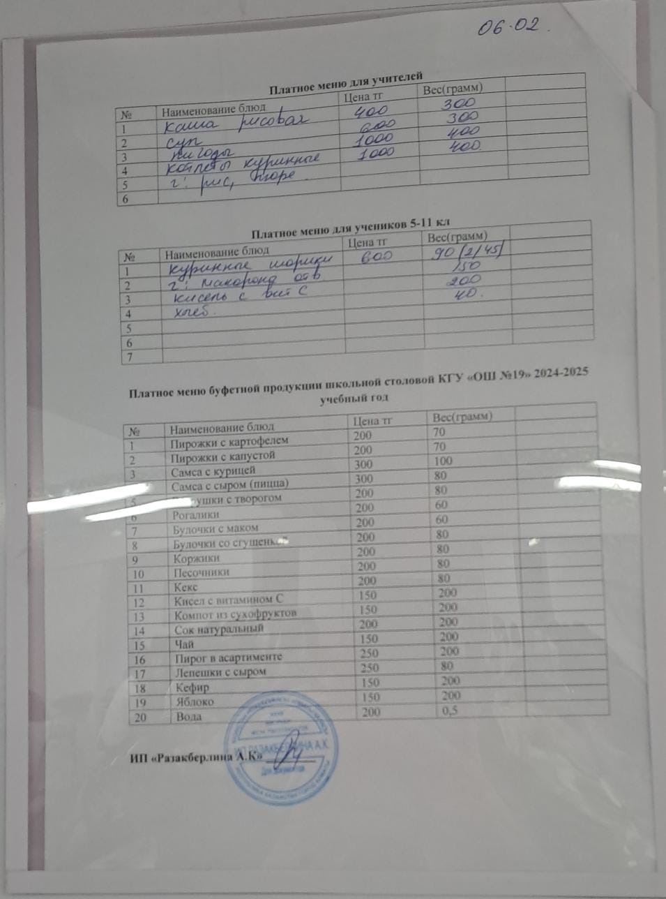 » Күнделікті ақылы тамақтану мәзірі (06.02.2025)