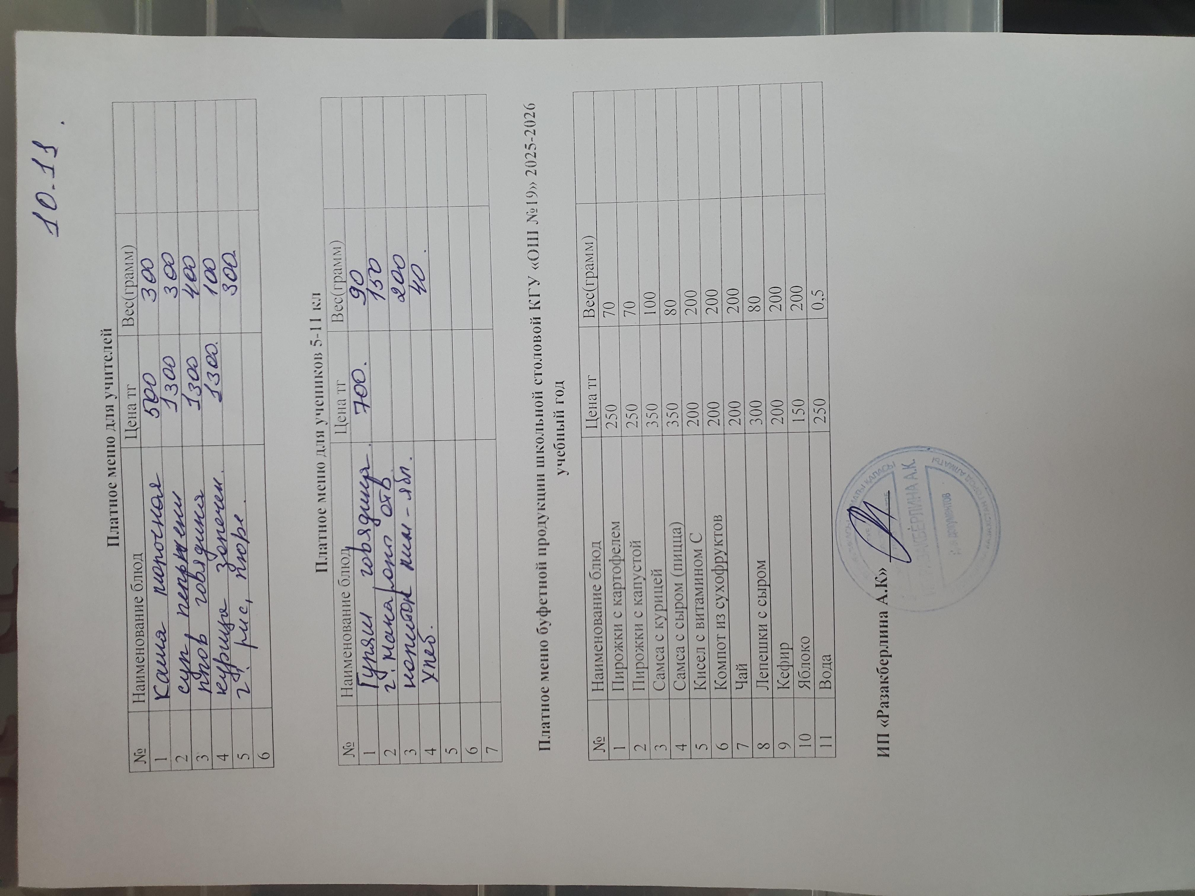 Күнделікті ақылы тамақтану мәзірі (03.11.2025)