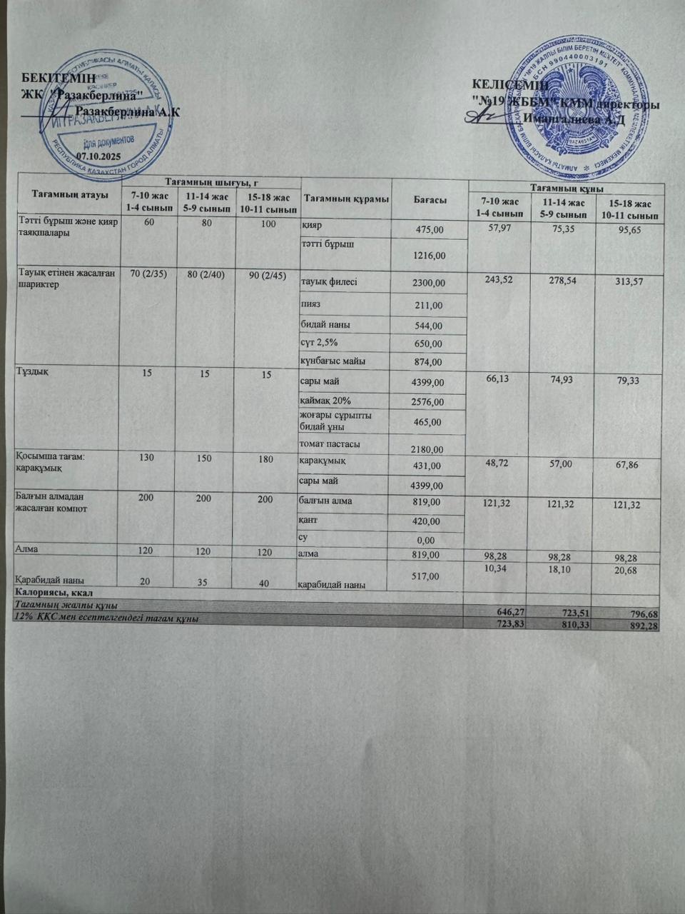 Күнделікті тегін тамақтану мәзірі (07.10.2025)