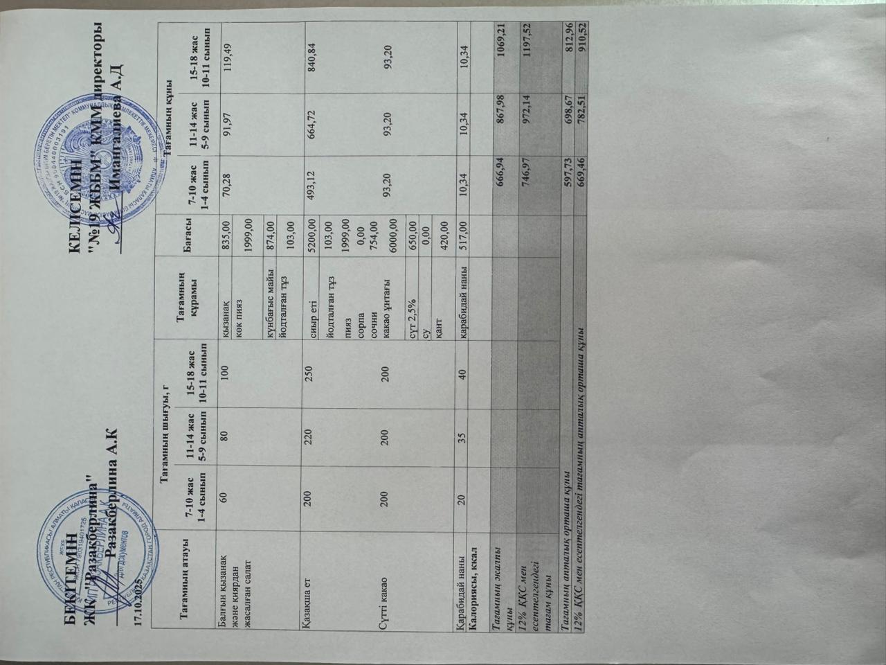 Күнделікті тегін тамақтану мәзірі (17.10.2025)