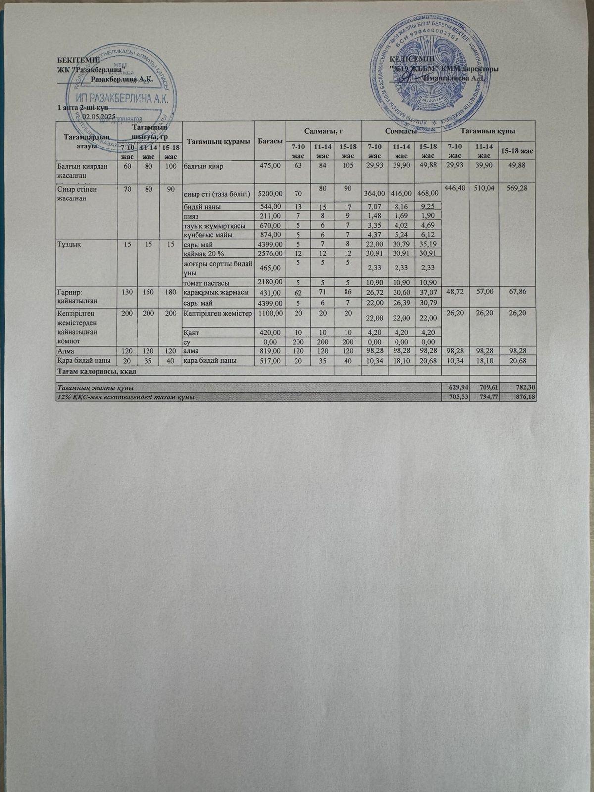 Күнделікті тегін тамақтану мәзірі (16.05.2025)