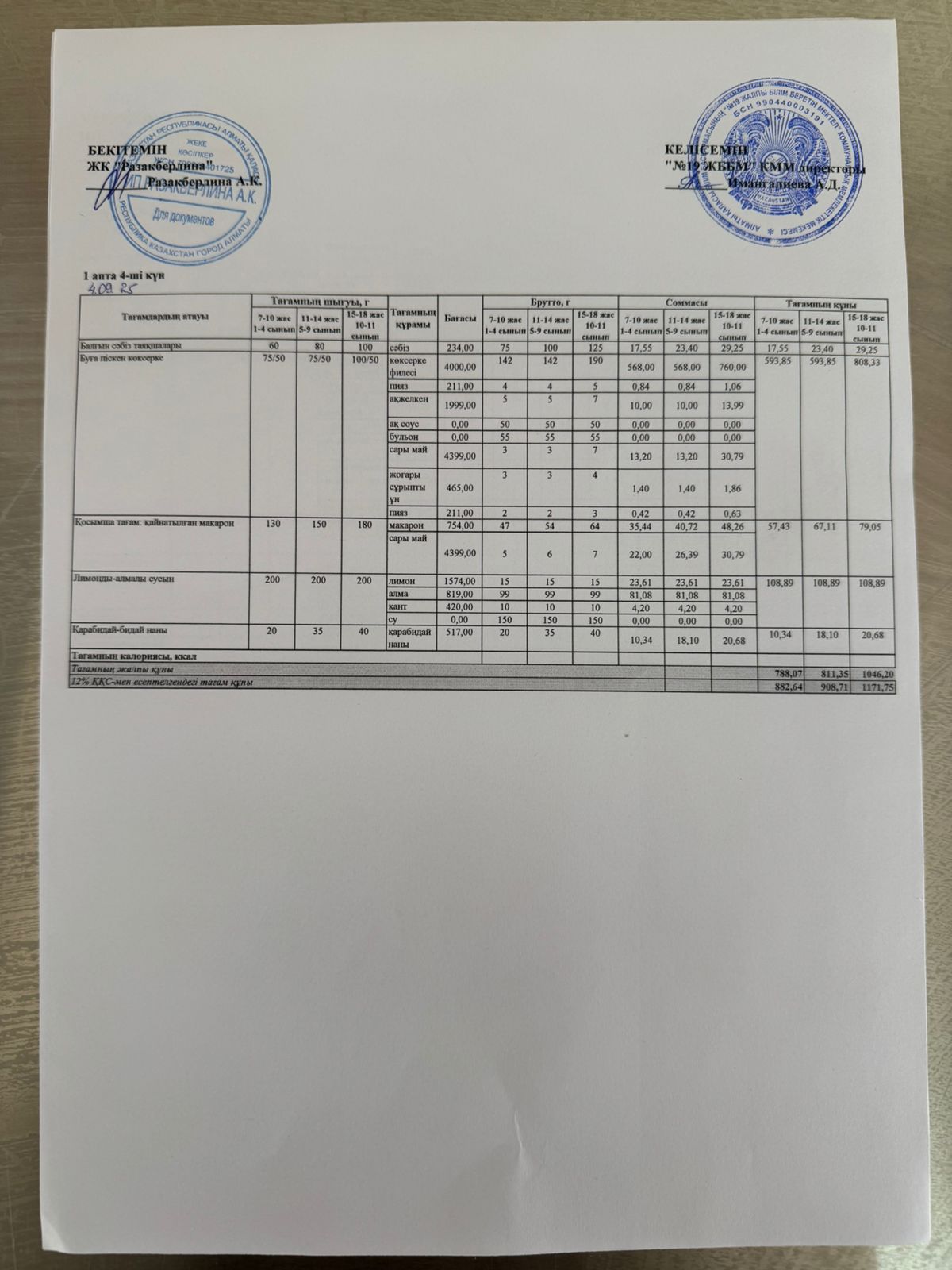 » Күнделікті тегін тамақтану мәзірі (04.09.2025)