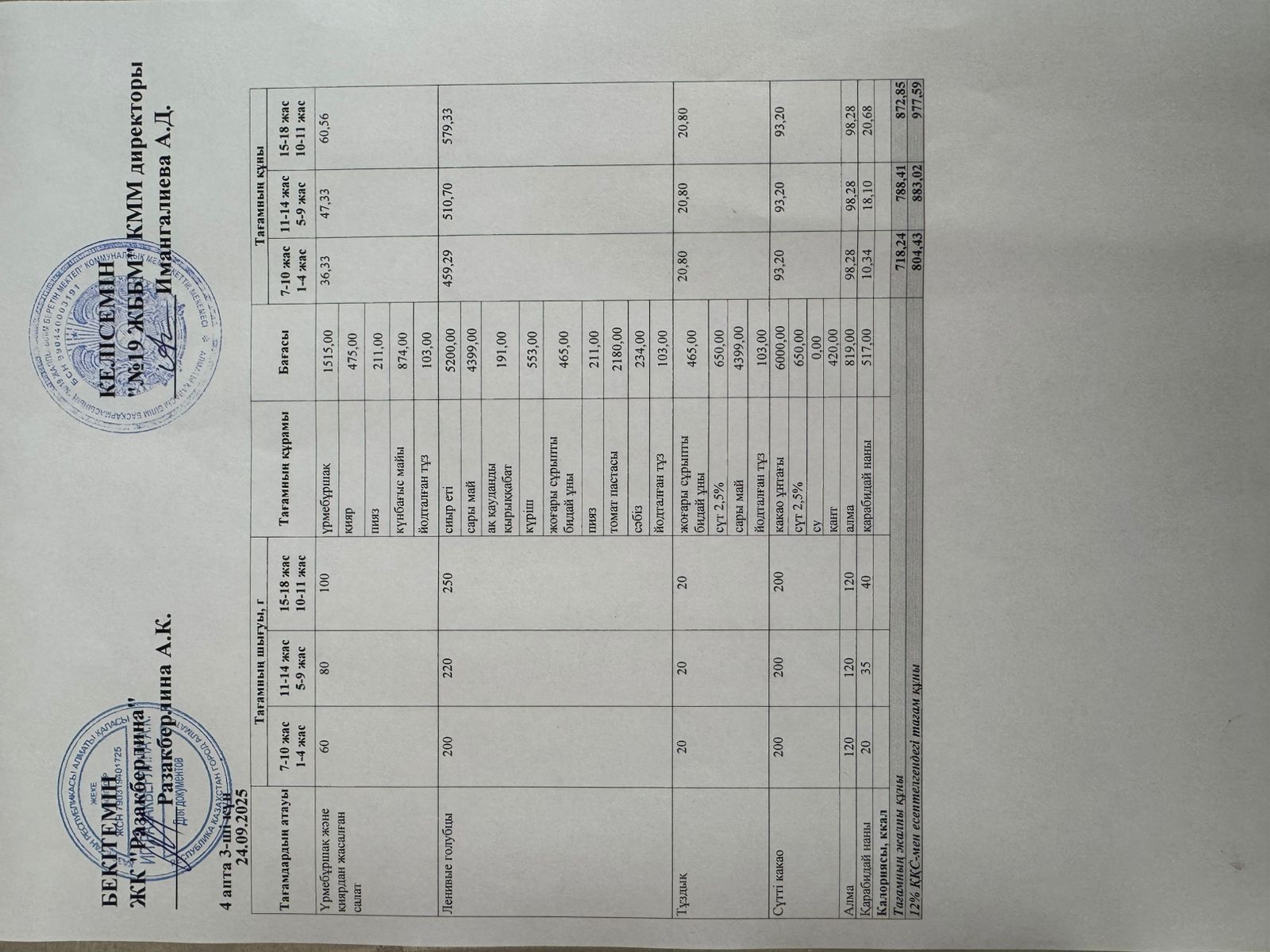 Күнделікті тегін тамақтану мәзірі (24.09.2025)