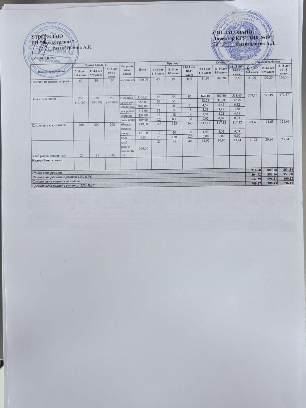 Күнделікті тегін тамақтану мәзірі (19.11.2025)