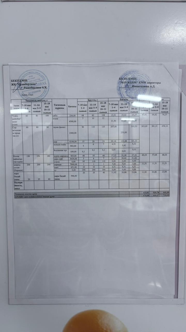 Күнделікті тегін тамақтану мәзірі (23.10.2025)