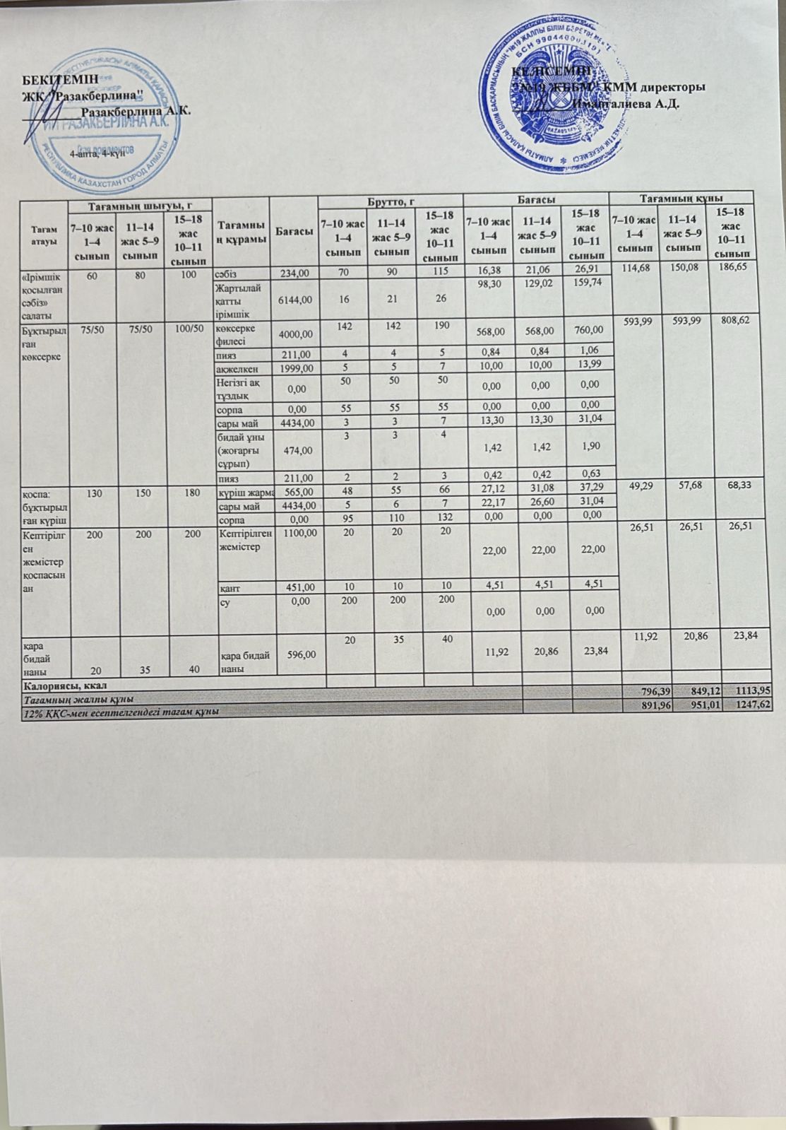 Күнделікті тегін тамақтану мәзірі (06.11.2025)