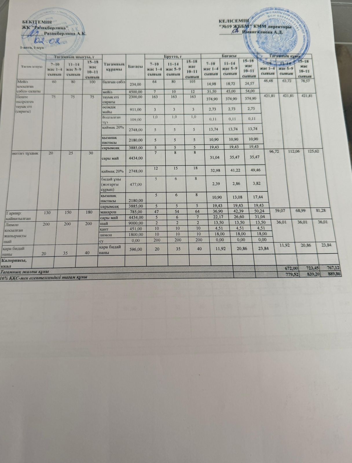Күнделікті тегін тамақтану мәзірі (28.01.2026)