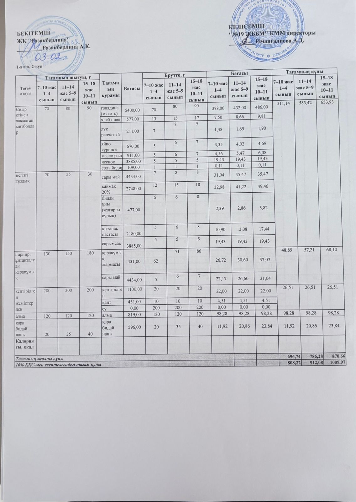 » Күнделікті тегін тамақтану мәзірі (03.02.2026)