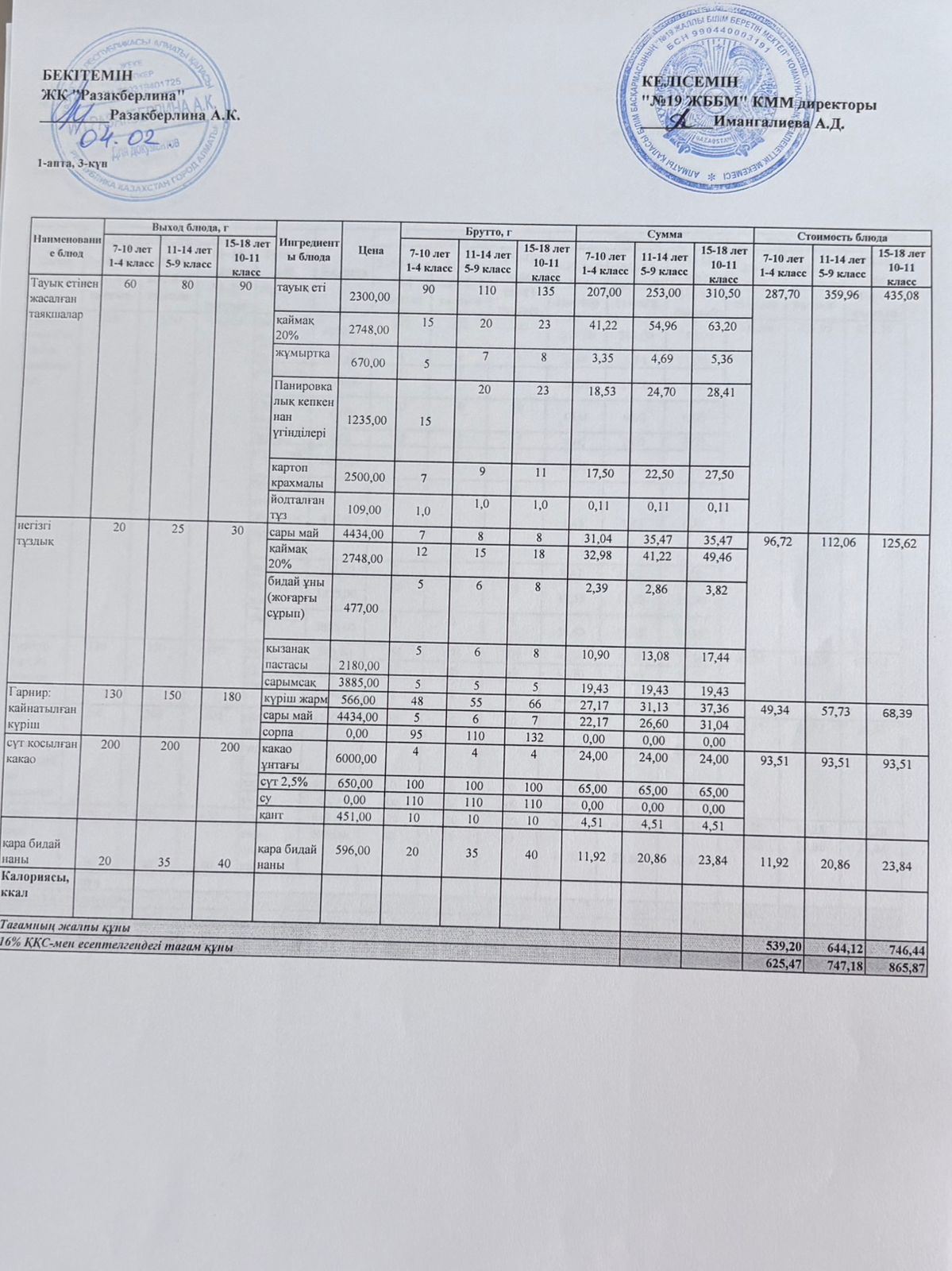 » Күнделікті тегін тамақтану мәзірі (04.02.2026)