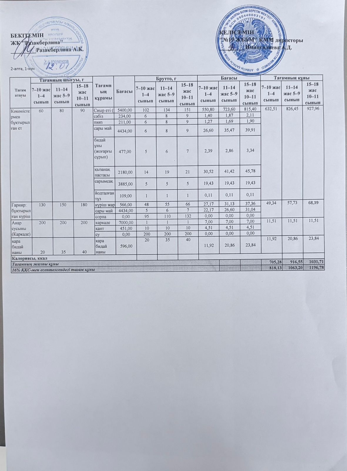 Күнделікті тегін тамақтану мәзірі (12.01.2026)