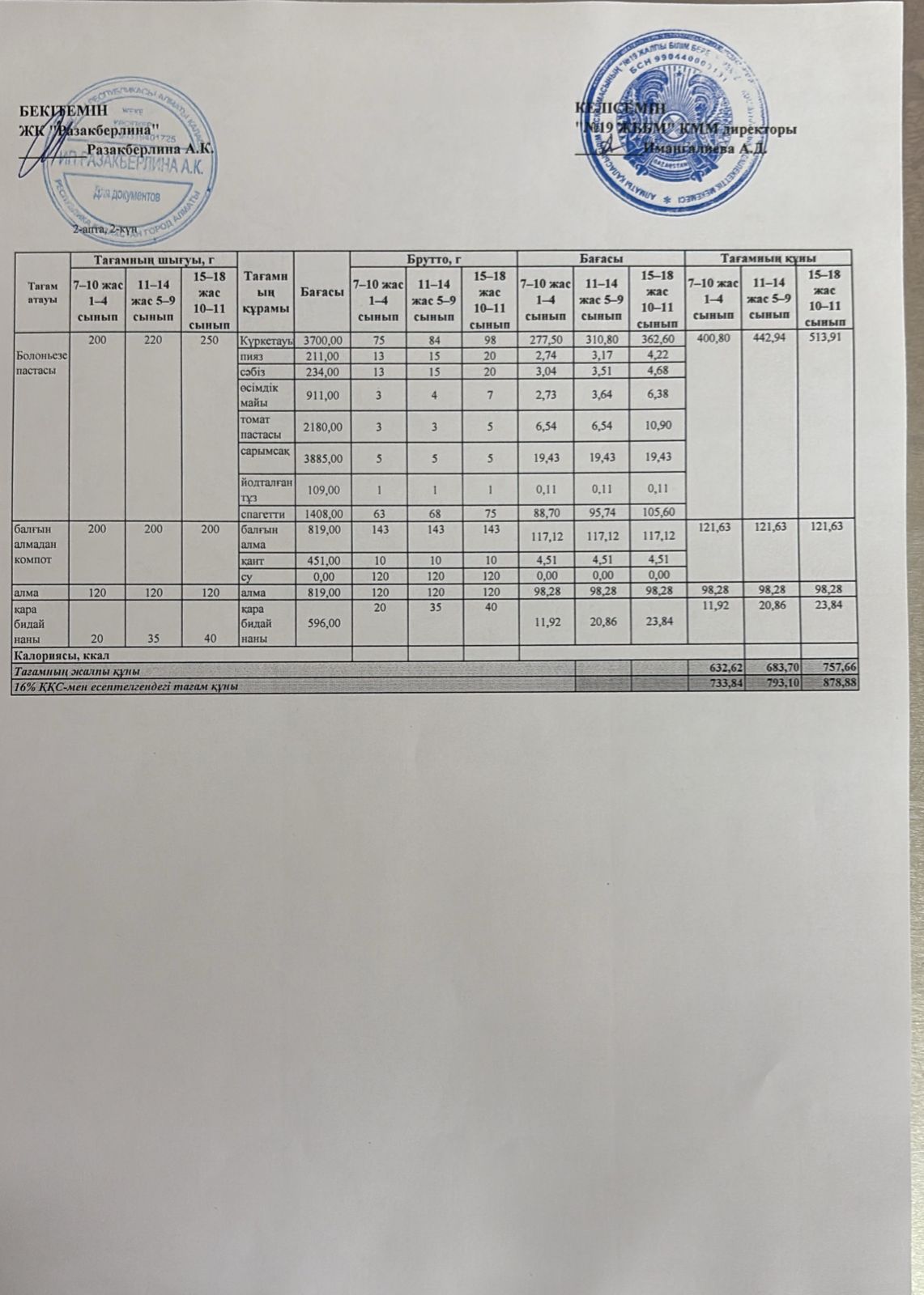 Күнделікті ақылы тамақтану мәзірі (12.01.2026)