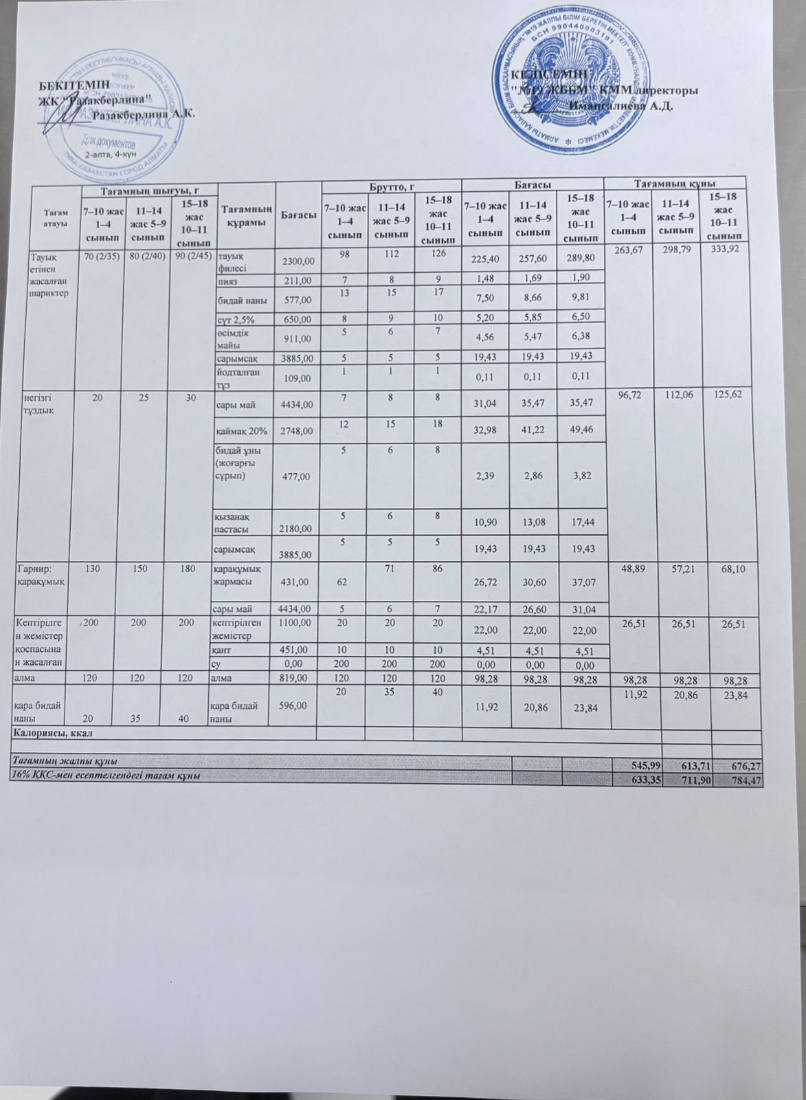Күнделікті тегін тамақтану мәзірі (15.01.2026)