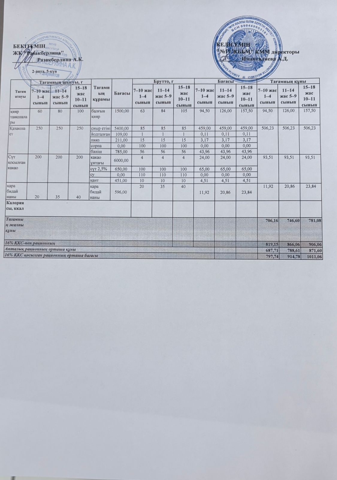 Күнделікті ақылы тамақтану мәзірі (16.01.2026)